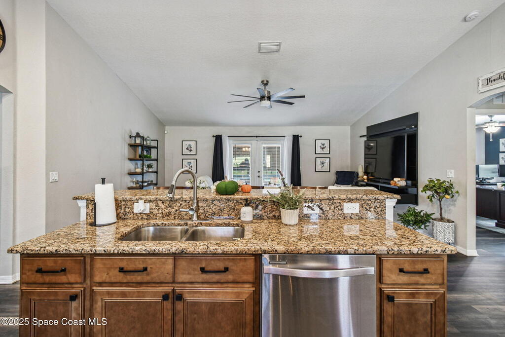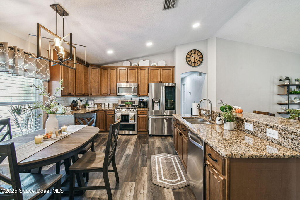 Welcome home to this warm and inviting split floor plan oasis on 1.68 acres--perfect for entertaining and everyday comfort. Bring your RVs, boats, SXS and more! Enjoy an open-concept layout with a cozy living room and upgraded kitchen (2022). The split design offers two guest bedrooms and a full bath on one side and a spacious primary suite with his-and-hers sinks and walk-in closet. Step through the screened patio to a tropical 18x33 saltwater pool (2023) with a large deck, solar-powered gazebo with TV cabinet, and a magazine-worthy firepit. The 24x36 workshop with 12' lean-to (2019) provides space for hobbies, storage, or potential MIL suite. Home features double insulation, RV hookups, pineapple trees, a new solar gate, and full alarm/camera system. Major updates: Roof 2019, Workshop 2019, Driveway 2019, AC 2020 (+UV 2022), Water heater 2021, Pool/slab/deck 2023, Appliances 2022. Enjoy privacy while being close to beaches, Orlando, shopping, dining, and major highways.