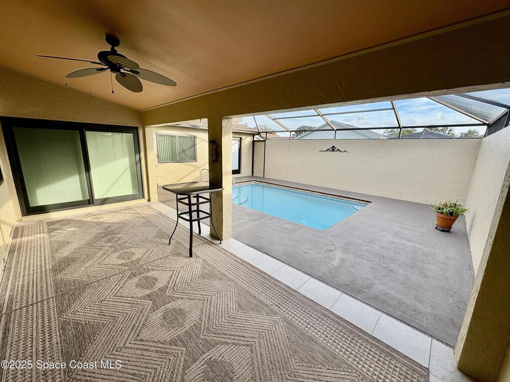 Beautifully updated 3 bed/ 2 bath, private pool home w/ 2 car garage. The kitchen features a large island, granite counter tops, newer cabinets and appliances. Tile floors throughout the home. Master suit is overlooking the pool with an updated walk-in shower, double vanities and large closet space. Guest bath is updated with granite counter tops and walk in shower. The pool area has a covered and screened patio offering a comfortable and private space for the family to enjoy. Gated community, solar panels and access to tennis courts, pickle ball and community pool. Close to Suntree Elementary, The Avenues shopping at Viera and Publix.