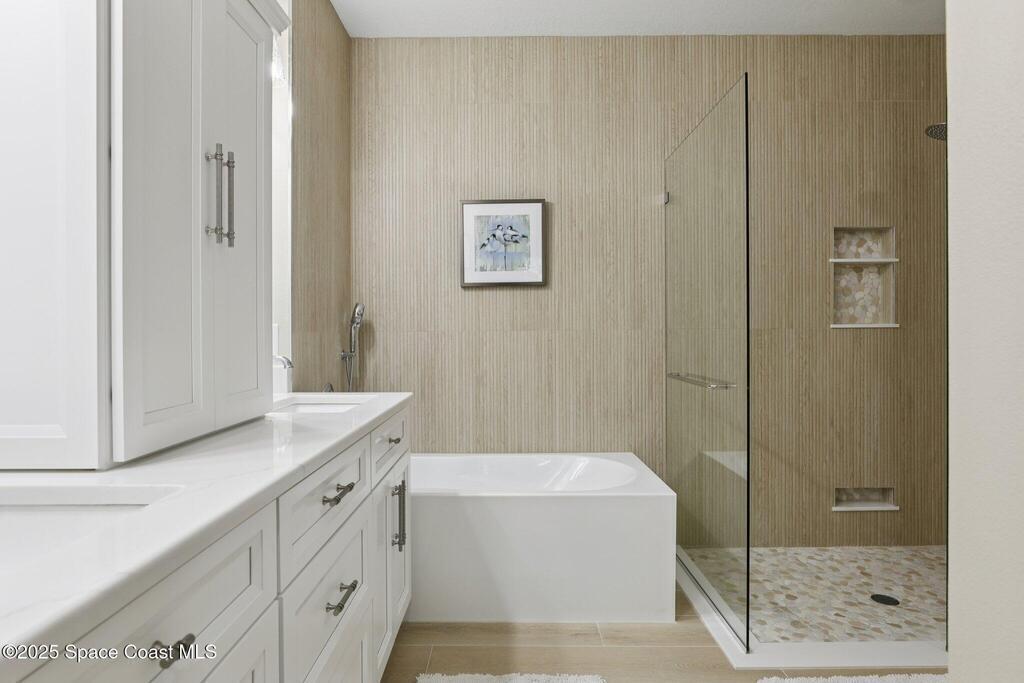 Breakfast Bar , Built-in Features , Ceiling Fan(s) , Eat-in Kitchen , Entrance Foyer , Guest Suite , His and Hers Closets , Open Floorplan , Pantry , Primary Bathroom -Tub with Separate Shower , Primary Downstairs , Vaulted Ceiling(s) , Walk-In Closet(s)