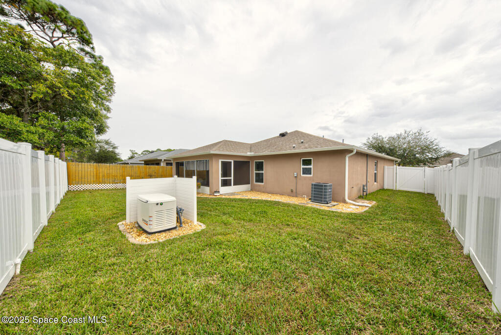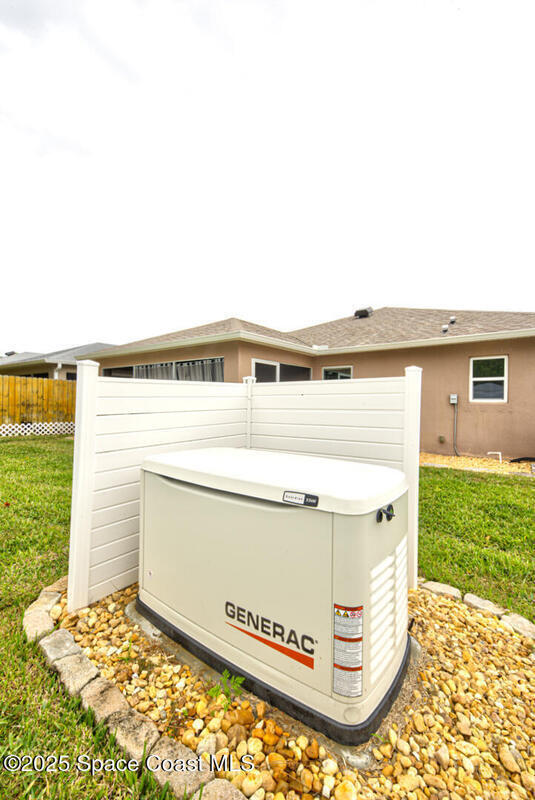 Welcome to this immaculate 3-bedroom, 2-bath, 2-car garage concrete block home located in the well-established Plantation Oaks Community in Titusville. Built in 2017, this spacious home upgrades include: new water heater, new AC system, new whole-home generator, and newly serviced whole-home water filtration system.Inside, you'll find vaulted ceilings, updated fixtures, updated Custom shelving, and luxury vinyl & ceramic tile flooring throughout--no carpet. The owner's suite features a large walk-in closet, soaking tub, & walk-in shower.Step out onto the 200 sq. ft. screened-in back porch and enjoy the privacy of your fully fenced backyard, complete with front and rear sprinkler systems to keep your landscape looking its best.Plantation Oaks low monthly HOA includes access to a spacious clubhouse and a heated pool, perfect for year-round enjoyment. The location is unbeatable--close to Kennedy Space Center, NASA, shopping, theaters, restaurants, and more!
