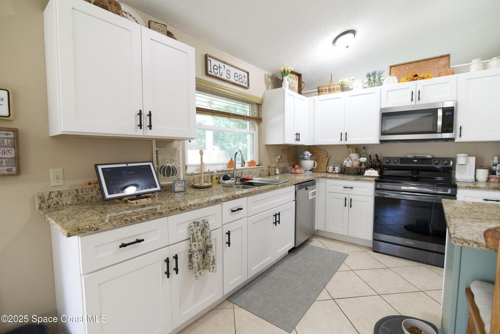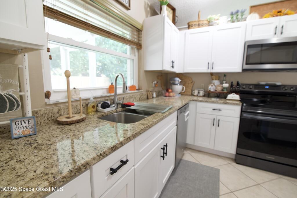 Welcome to this very well-maintained 3 bedrooms, 2 bathrooms, 2 car garage with a screened in patio, in the heart of Rockledge. Inside you will find a bright, open living space with a functional layout perfect for everyday living and entertaining. Tiled floor throughout including bedrooms. The Island kitchen offers ample cabinet space and overlooks the backyard, while the spacious dining area connects easily to the main living room. Enjoy a screened patio and fully fenced backyard. The home features a 2-car garage, new roof, hurricane proof windows & slider (2022) new kitchen cabinets & granite countertops (2022) New tiled showers (2025) New water heater (2023) New Ac / Heat (2025) Solar Panels (2025) New toilets (2022) New sinks & fixtures in kitchen & bathroom, new Wi-Fi thermostat, and even new lighted outlet covers throughout the house! barnyard doors (2025) Fence (2023) Garage door & opener (2023) Added garage outlets & new ceiling fans in every room!