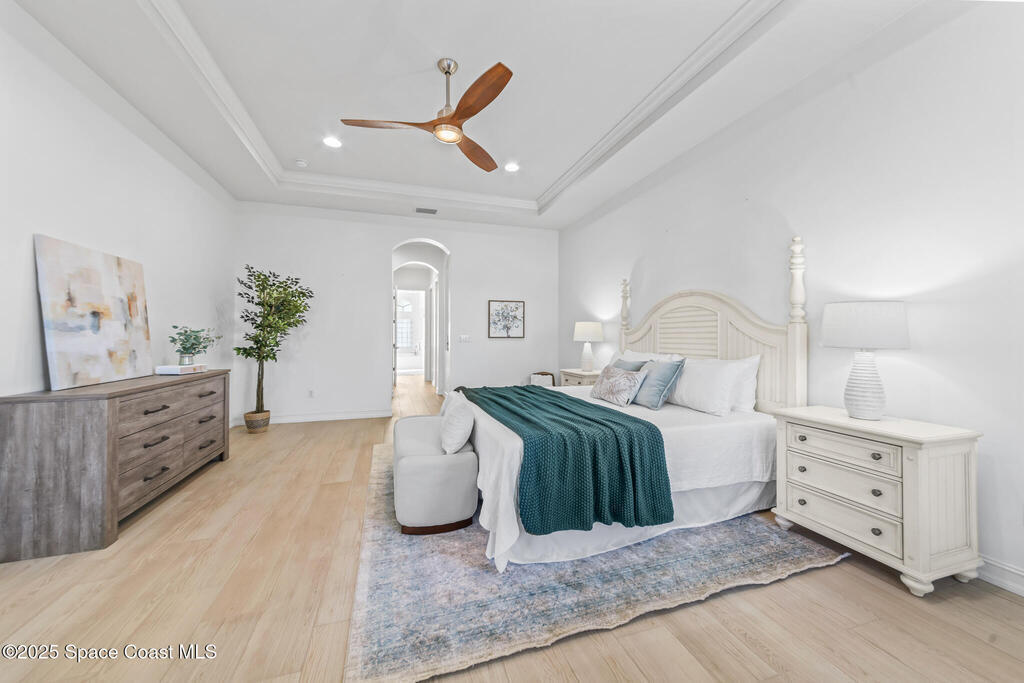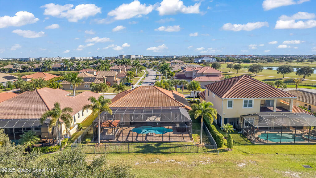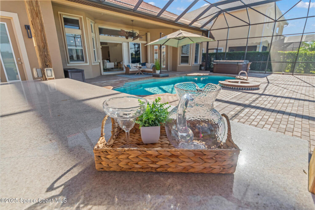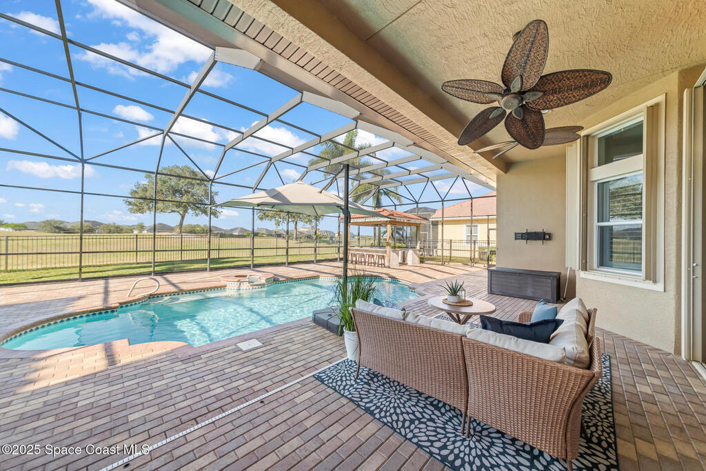 A rare find with the Duran Golf lifestyle is a perfectly positioned home overlooking the 8th hole! This Fairway Lakes beauty is truly above PAR! Inside, the home features 3 bedrooms and 3 full bathrooms, including a spacious primary suite and an additional en-suite bedroom. A versatile flex/office space with a Murphy bed offers the ideal setup for guests or work-from-home convenience. The expansive screened outdoor area is made for Florida living, complete with a solar-heated pool, outdoor kitchen, and stunning golf course views. Additional highlights include a tile roof, circular driveway and an American Home Shield warranty already in place for the new owners. Golf cart to the Duran Golf Club or to the Viera Avenue for dining and endless entertainment!This home is in the cul-de-sac which is perfect for overflow parking or easy access to the golf course!Close to hwy 95, 25 minutes to the beach or Port Canaveral, 45 minutes to Orlando. This home is a rare gem!