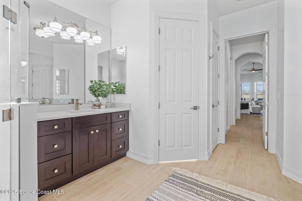 Breakfast Nook , Ceiling Fan(s) , Eat-in Kitchen , Entrance Foyer , Guest Suite , His and Hers Closets , Kitchen Island , Pantry , Primary Bathroom - Tub with Shower , Split Bedrooms , Walk-In Closet(s)
