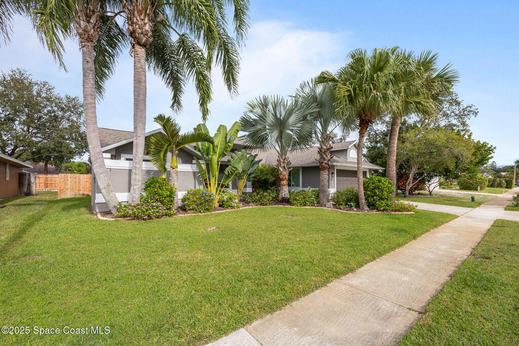 Live the Florida dream! This gorgeous 4 bedroom pool home has been well loved with many updates throughout! Lush & easy maintenance landscaping, screen enclosed pool & porch is perfect for entertaining. Chef's kitchen w/ quartz counters, stainless appliances, gas stove, ample cabinet space & pantry. Features a 2020 dimensional shingle roof, tankless gas water heater, impact windows, freshly painted, LVP floors throughout and a completely renovated master bathroom with soaking tub and huge shower! Nestled in the serene community of Croton Meadows, 9 minutes to ocean in Satellite Beach and within walking distance to Wickham Park, Eastern Florida State College & the King Center! This is a stunning must see home, come by today!