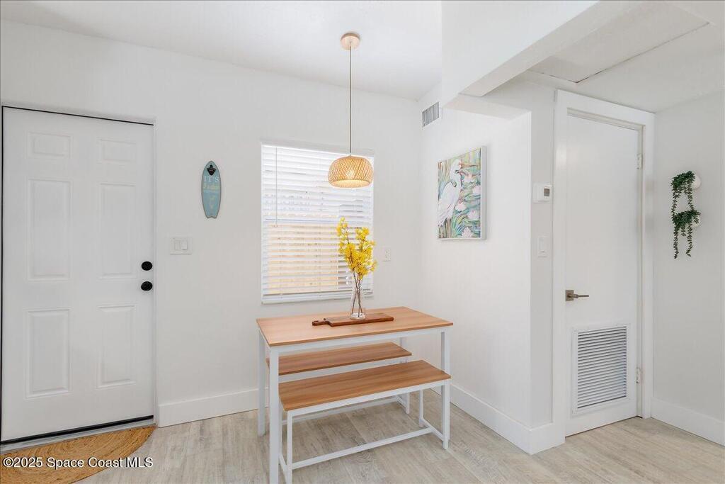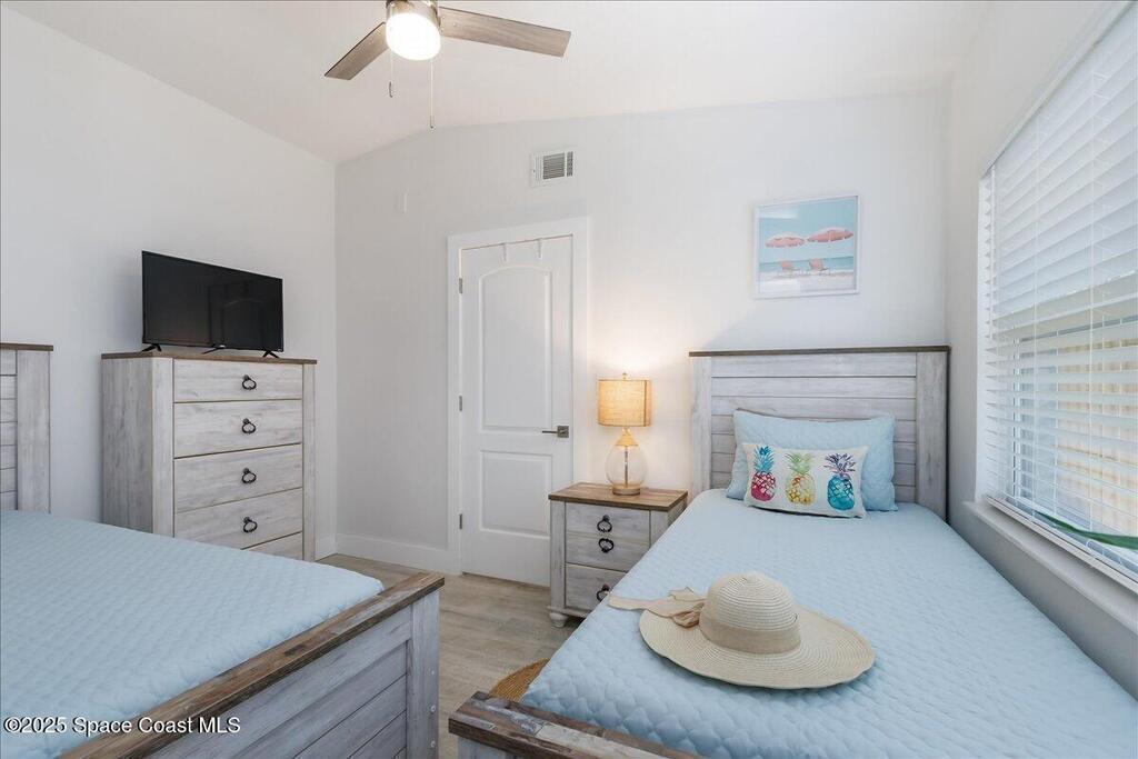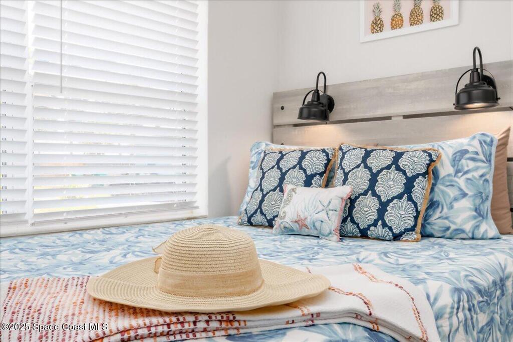 FULLY FURNISHED UNIT IN AMAZING WATERFRONT COMMUNITY WITH LARGE NEW DOCK OVERLOOKING BANANA RIVER AND ONLY 3 MINUTE WALK TO BEACH! This completely redone professionally decorated unit has so much to offer including: NEW beige-washed tile floors, base boards, trim work, interior doors, knobs, textured walls, ceiling fans, recess lights, electrical, tankless water heater, 2023 A/C, windows, metal roof, window treatments, and more! Kitchen has white shaker cabinets, white subway tile backsplash, granite countertops, and all new appliances. Rinse off the sand after a fun day at the beach with your outdoor shower off back paver deck. Come and enjoy the BEAUTIFUL sunsets on the community Dock! Only 2.5 miles from world famous Downtown Cocoa Beach. Internet, streaming cable and water included. 6 MOINTH LEASE ONLY AT THIS PRICE! SHORTER TERM $3,500 A MONTH.