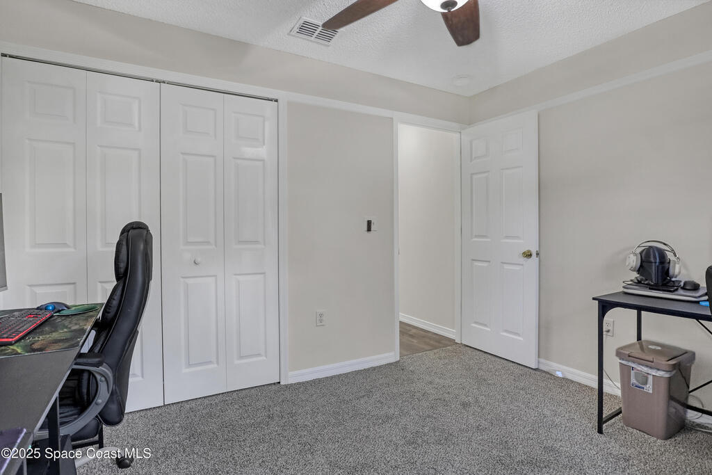 Beautifully maintained 3BR/2BA split-plan home in desirable SE Palm Bay! This welcoming layout features formal living and dining areas, a spacious family room, and a bright kitchen with a breakfast bar, nook, and pantry. One front room has been converted to an office but can be easily restored to the original open space. Fresh neutral paint throughout gives the home a clean, airy feel.Notable improvements include: 2021 updates: Metal roof, hurricane-rated impact windows, interior & exterior A/C with HALO air purifier, foam-insulated attic, and a thermostat-controlled attic fan. Additional upgrades: Water heater (2023), new flooring throughout, and newer appliances.Enjoy the screened porch and fully fenced backyard, offering room to unwind, garden, or entertain. With a comfortable layout and thoughtful updates already in place, this SE Palm Bay home is ready for its next chapter. Don't miss your chance to see it--schedule your private showing today!