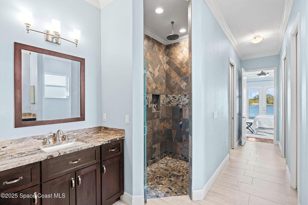 Stunning 5-Bedroom Waterfront Retreat on Almost 2 Acres at the End of a Quiet Cul-de-Sac, NO HOA...A Multigenerational Dream HomeTucked away at the end of a peaceful cul-de-sac and set on nearly 2 acres of beautifully maintained land, this exceptional waterfront home offers unmatched privacy, freedom, and luxury. Designed for comfort and versatility, this home features 5 bedrooms and 3.5 baths, including two spacious primary suites ideal for multigenerational living, guests, or teens. Each suite includes its own ensuite bath and custom built-in walk-in closets, offering privacy and convenience for everyone.Inside, high ceilings enhance the airy, elegant atmosphere, while large windows bathe the home in natural light and showcase stunning water views. The gourmet kitchen is a chef's dream, stainless steel appliances, custom cabinetry including soft close solid wood cabinets, and a huge walk-in pantry for maximum organization. Built-in closets are abundant