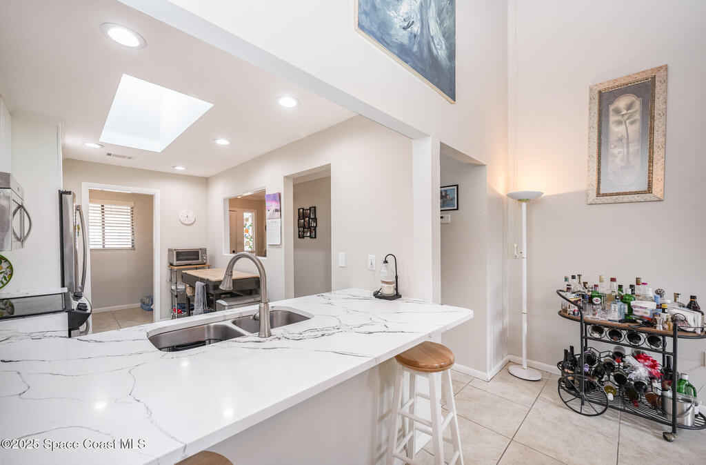Nestled in the heart of Suntree you'll find this charming townhome! Featuring 2 bedrooms, 2 baths and a beautifully updated kitchen, this single story unit sits directly on Suntree Country Club's 8th hole of the Classic course. Enjoy the lush and peaceful golf course views from the living/dining room, primary bedroom and spacious enclosed porch. Other features include newly remodeled kitchen with white cabinets and beautiful quartz counters, neutral tile throughout, indoor laundry room, plenty of closet space, hurricane shutters, and covered carport with extra storage. Just a short walk or golf cart ride to Suntree Country Club and convenient to the beach, shopping, and all that Brevard County has to offer! Relax and enjoy... the HOA takes care of outside maintenance including the roof, insurance and landscaping.