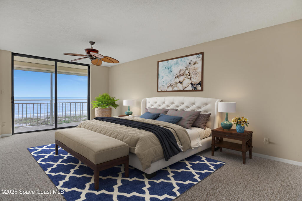 STUNNING OCEANFRONT CONDO! Spacious 3bed/2bath condo featuring breathtaking ocean and river views. Enjoy beautiful sunrises and rocket launches over the Atlantic, relax by the heated pool or take in sunsets from your private balcony. Semi-private entry from the elevator leads to a bright and open living space with new carpet and balcony access. The kitchen features a walk-in pantry, island, built-in desk and coffee bar all with granite countertops. Perfect for cooking & entertaining. Master suite offers a walk-in closet & his/her vanities. Two guest bedrooms provide river views and beautiful sunsets. Includes all appliances, New AC -2024 and hurricane shutters throughout. Community amenitites include private beach access, heated pool, clubhouse and one assigned garage with extra storage. Prime location just minutes from downtown Cocoa Beach, the Pier, Kennedy Space Center and Port Canaveral. Don't miss this rare opportunity to own a piece of paradise on the Space Coast