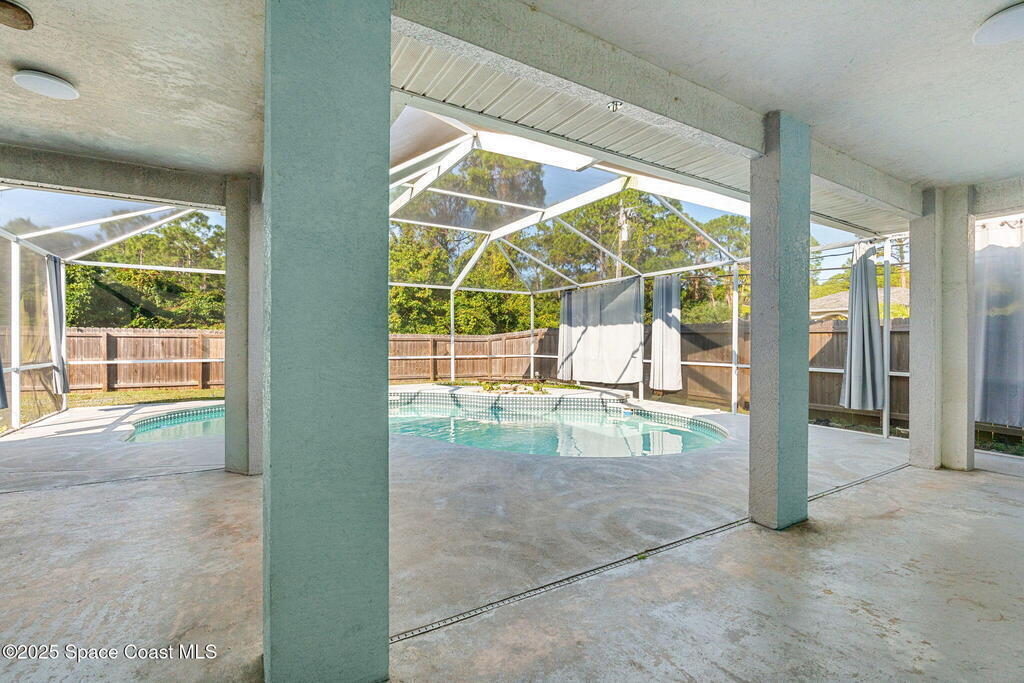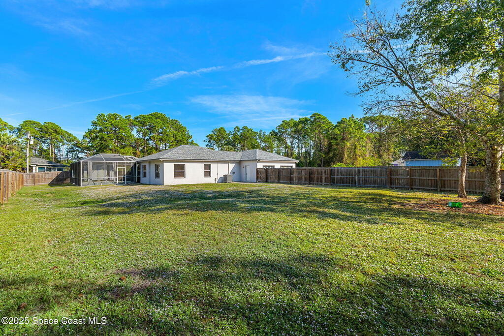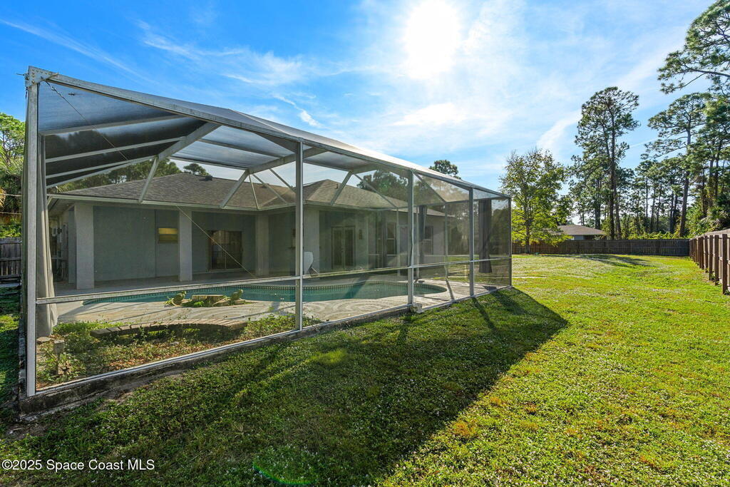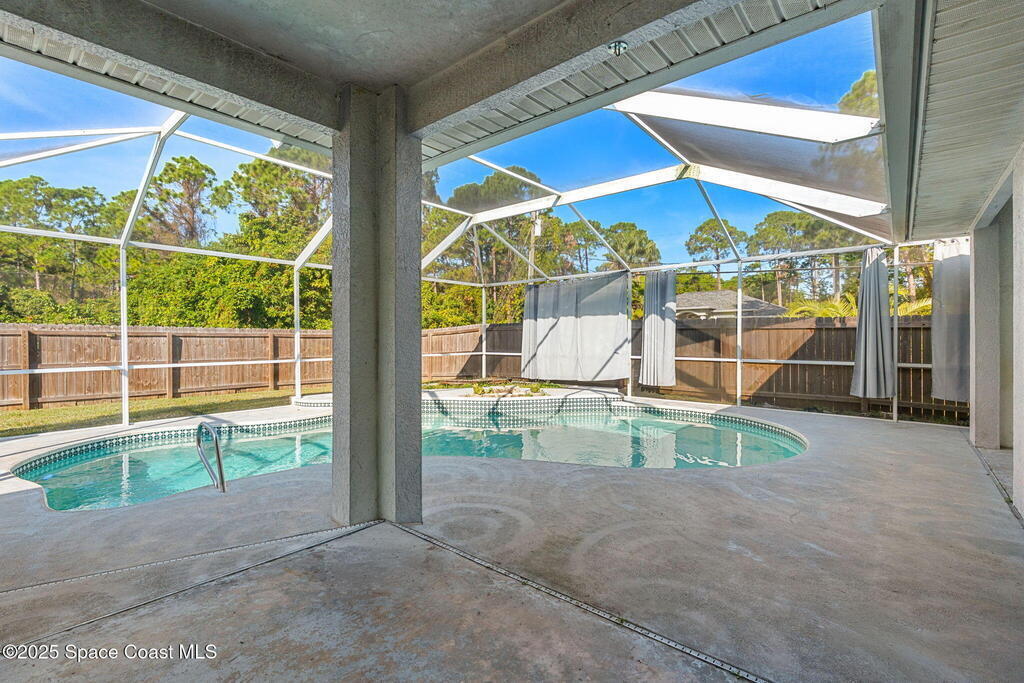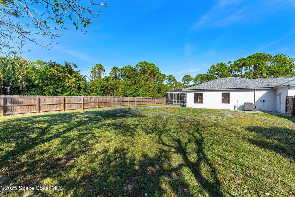 Endless potential meets unbeatable space in this custom-built CBS constructed 3-Bed, 2-Bath POOL HOME with a coveted 3-Car Garage, all set on a HUGE CORNER LOT-.74 Acres = 3 Lots! Step inside to find a split floor plan with a welcoming kitchen at the heart of the home, featuring a central island and breakfast bar--perfect for gathering. High ceilings and skylights add a bright and airy feel. In the primary suite, you'll find a relaxing garden tub and an updated walk-in shower. Outside, enjoy a screened pool and spacious trussed lanai and fenced yard--your own private oasis for year-round Florida living. Need room for toys? There's plenty of parking for a boat, RV, trailer, or all three! Major improvements include a newer roof (2021), water heater (2022), and HVAC (2017). Located just minutes to the new Heritage Square Shopping Center and easy access to I-95. Sold AS-IS, this home offers a fantastic opportunity to add your own touches and unlock its full potential!