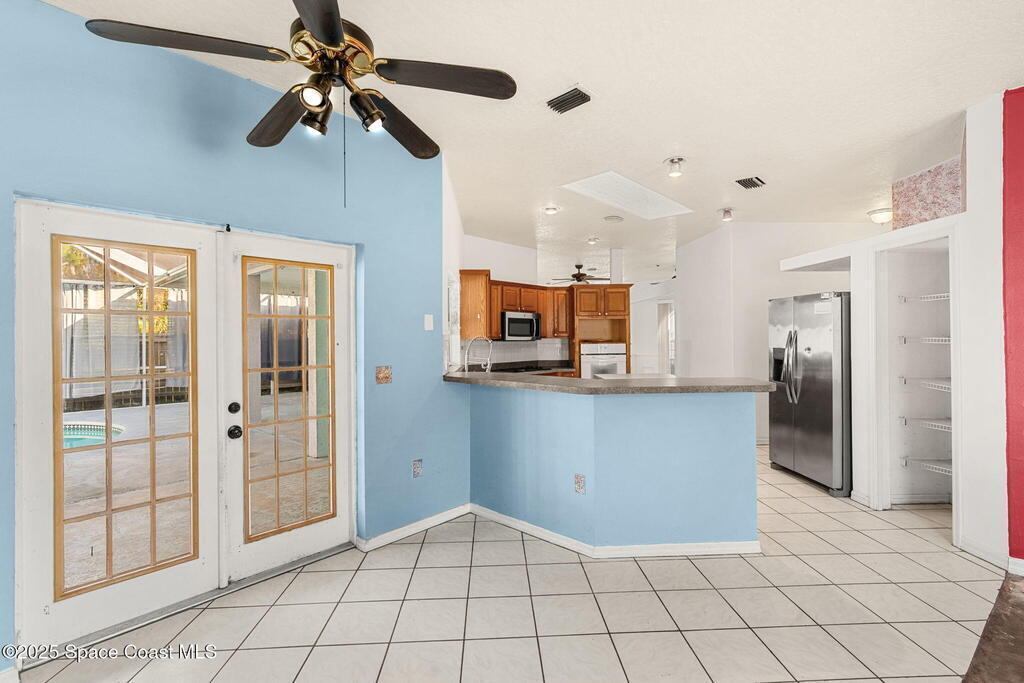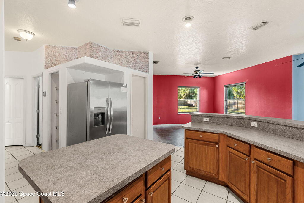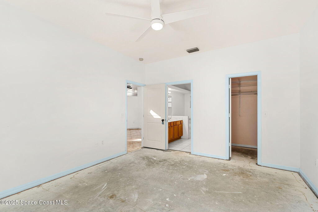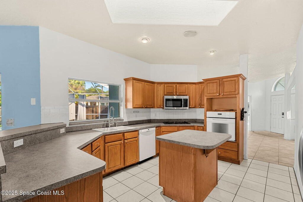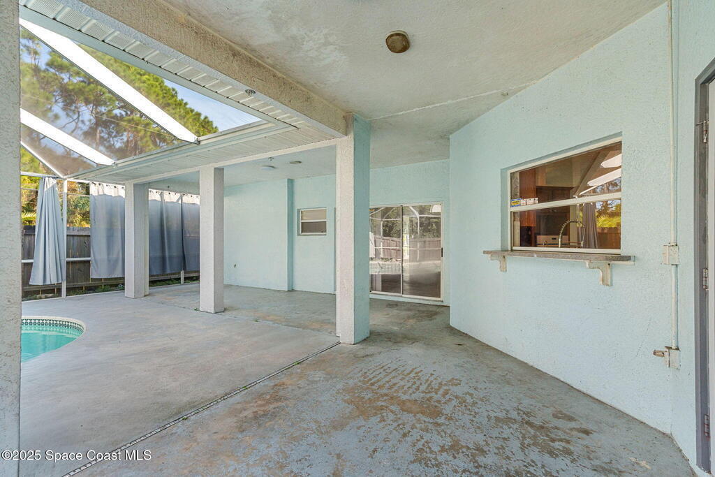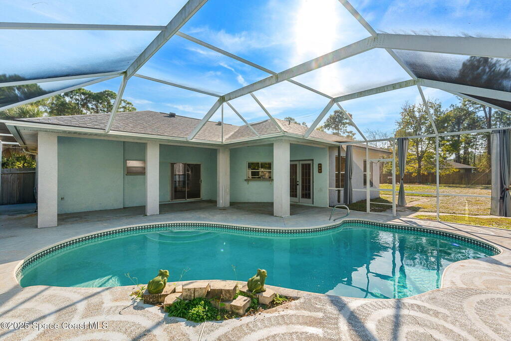 Endless potential meets unbeatable space in this custom-built CBS constructed 3-Bed, 2-Bath POOL HOME with a coveted 3-Car Garage, all set on a HUGE CORNER LOT-.74 Acres = 3 Lots! Step inside to find a split floor plan with a welcoming kitchen at the heart of the home, featuring a central island and breakfast bar--perfect for gathering. High ceilings and skylights add a bright and airy feel. In the primary suite, you'll find a relaxing garden tub and an updated walk-in shower. Outside, enjoy a screened pool and spacious trussed lanai and fenced yard--your own private oasis for year-round Florida living. Need room for toys? There's plenty of parking for a boat, RV, trailer, or all three! Major improvements include a newer roof (2021), water heater (2022), and HVAC (2017). Located just minutes to the new Heritage Square Shopping Center and easy access to I-95. Sold AS-IS, this home offers a fantastic opportunity to add your own touches and unlock its full potential!