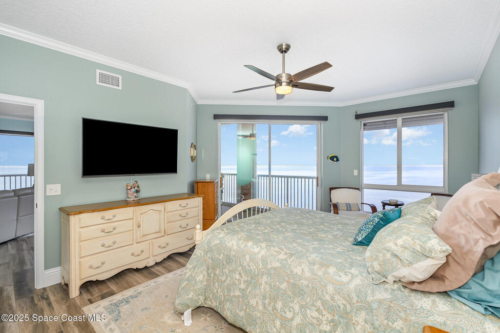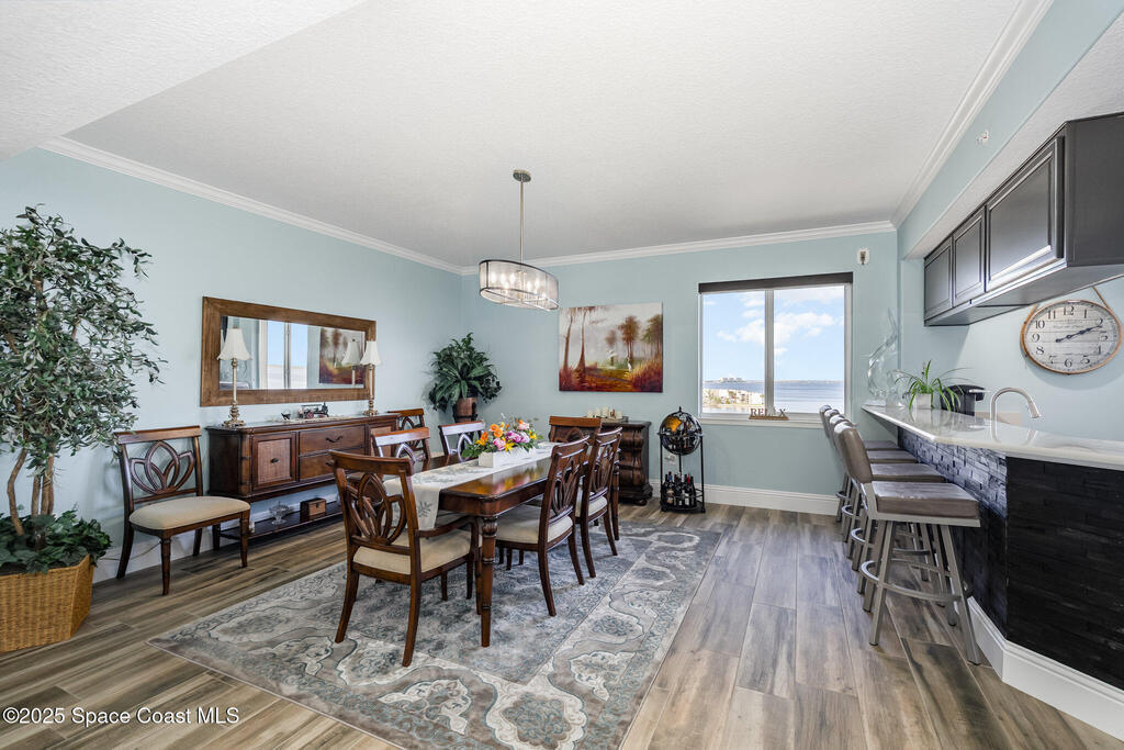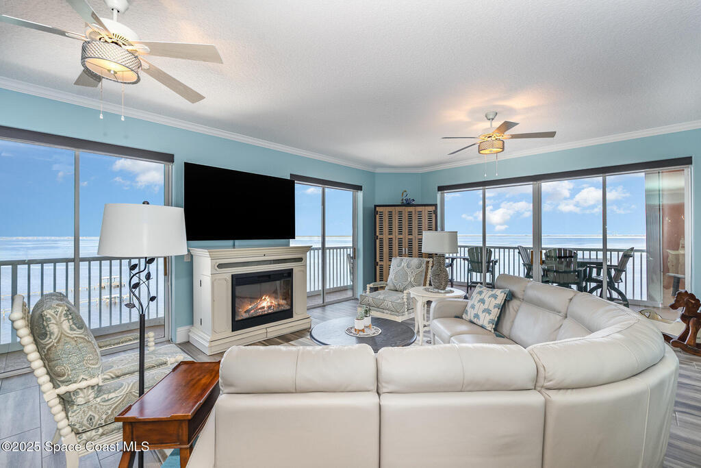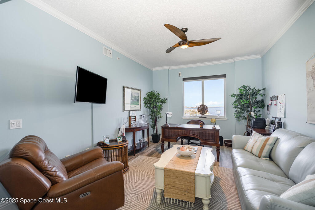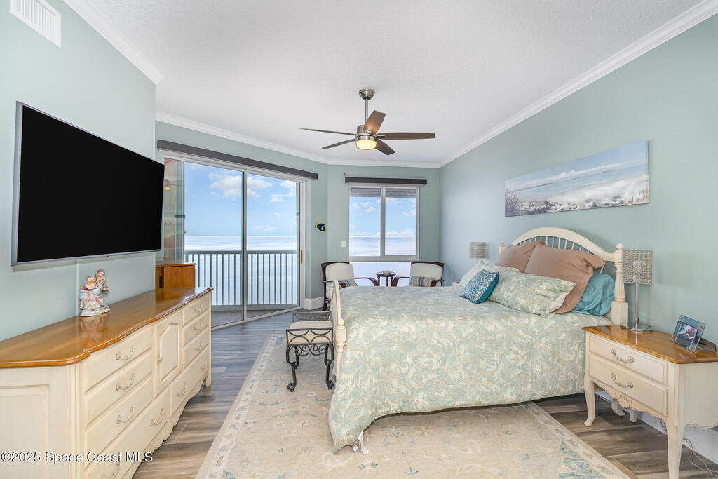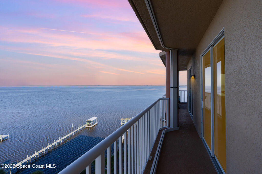 Take me to the river! Stay and enjoy expansive water views and rocket launches from nearly every room of this 9th floor 3 bedroom 3.5 bath masterpiece! Fully remodeled to a very high standard. 9 foot ceilings with crown molding throughout! New tile floors with upgrades galore. Work from home in large office/study! Separate laundry room with additional storage. The designer chefs kitchen with quartz counter tops and upscale appliances is sure to please! Open floor plan makes it live like a single family home yet with the conveniences of a first class condo. Tankless water heater, newer ACs and plantation shutters are all a bonus. Did we mention two separate private garages and an additional spot under the building! Association is well managed and funded with a completed reserve study for piece of mind! Ideally located with convenient access to all that the space coast and Orlando areas have to offer. Request your private showing today or someone else will!!!
