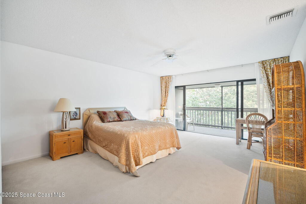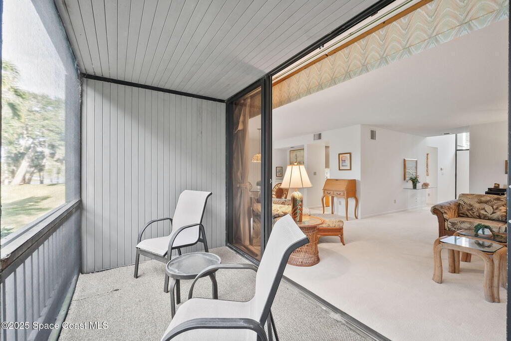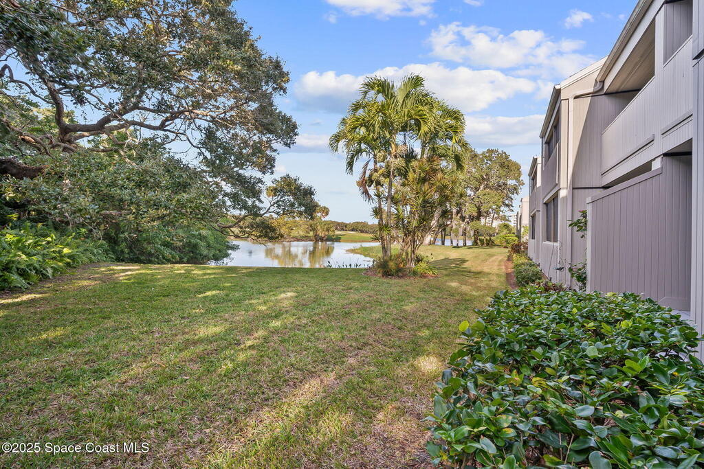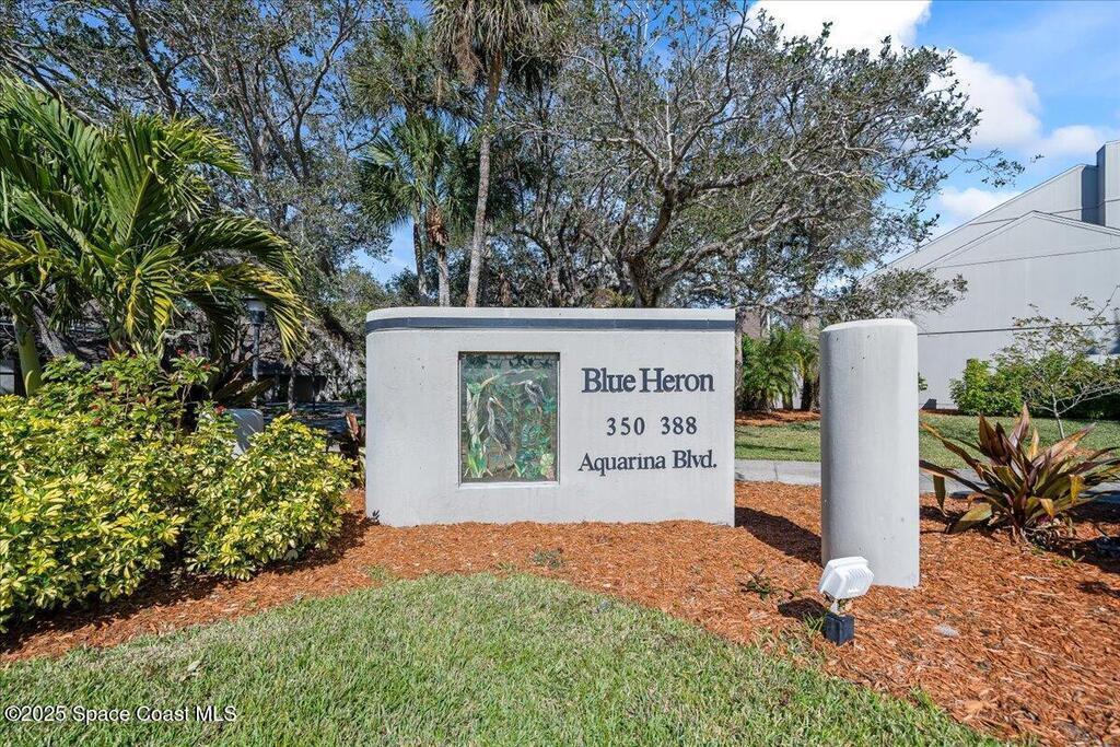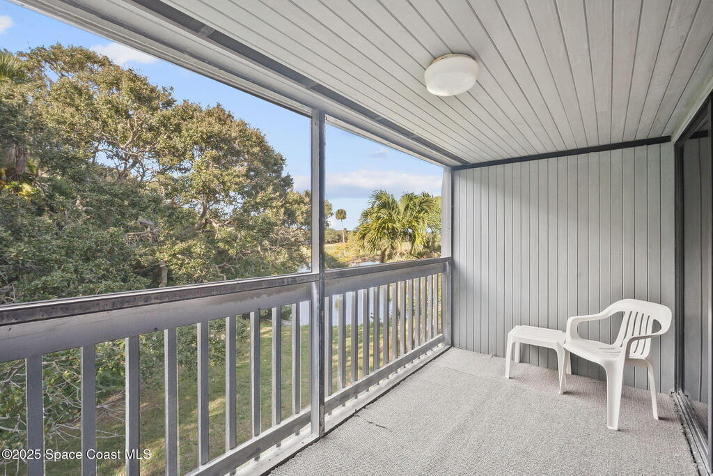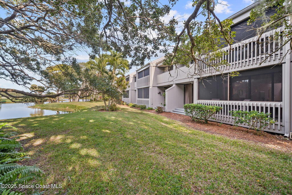 Enjoy nature at it's finest among the stately oaks and golf course right in your own back yard! Multiple patios and balconies (both screened and unscreened) capitalize on the park-like setting with exceptional views of the 7th fairway and serene lake. Inside you'll find spacious living and dining rooms, both with oversized sliders leading to screened patios. Just off the kitchen and breakfast nook a private courtyard connects the oversized 1 car garage with the residence. Upstairs are two bedrooms, each with their own bathroom. The generously sized primary suite has two closets and its own private balcony. Aquarina Beach & Country Club provides resort-style living at its best with world class amenities including a Beach Club with private beach access, RV & boat storage, dock and river access including a launch area for small boats, tennis and fitness center, golf club and newly renovated on-site restaurant, community center/club house with too many activities to mention.