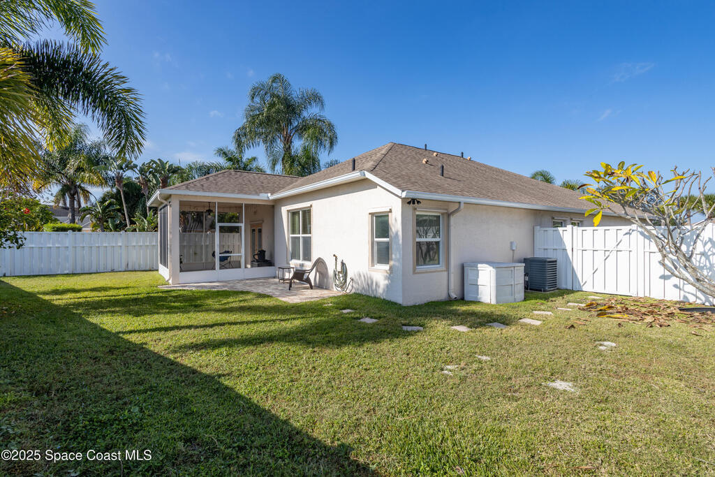 Beautiful 3-Bedroom, 2-Bath home in Viera East with all the updates! Light and bright with high ceilings throughout. Wood-plank flooring in living areas. Gorgeous eat-in kitchen with granite counters, stainless-steel appliances, HUGE island with breakfast bar, and lots of storage. Primary bedroom with large walk-in closet and private bathroom with granite counters, double sinks, garden tub, and separate shower. New roof 2017. Water heater 2018. AC 2015 (perfect condition- serviced 3x annually). Laundry room with washer and dryer. Ring doorbell, upgraded blinds, and remote-controlled sun shades. 2-car garage. Tasteful landscaping. Fully-fenced back yard. Relaxing screened back porch and brick paver patio. Hurricane shutters throughout. Located on a quiet cul-de-sac in the Osprey Ridge subdivision, with relaxing community pool. Close to A-rated schools, recreation, shopping, and dining. 15 minutes to the beach, 45 minutes to Orlando. Completely move-in ready and waiting for you now!