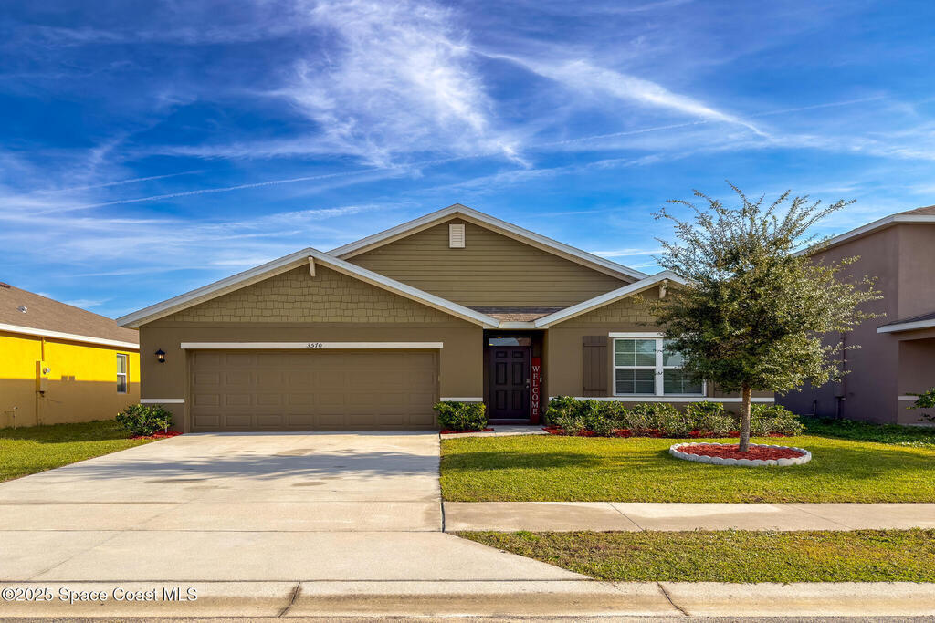 Welcome to 3570 Burrowing Owl Dr in the sought-after Indian River Preserve! Why wait for new construction? This move-in ready 4BD/2BA home (built 2023) sits on a prime lot backing directly onto the fairway, offering sweeping views and privacy with no rear neighbors, located on a culdesac. Inside, the 1,828 sq. ft. open-concept layout is designed for modern living. The kitchen features a massive island, stainless steel appliances, and a pantry, flowing seamlessly into the bright great room. The private Primary Suite boasts a luxe ensuite with dual sinks and a huge walk-in closet. If you have dreamed of wanting to live in an active community where you can walk out of your front door and start golfing, this is the home for you.