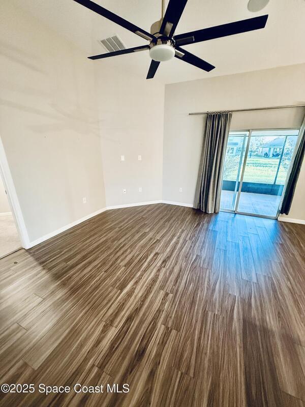 Welcome to this beautifully maintained 4-bedroom, 2-bathroom home with a two-car garage, located in a quiet and established Northeast Palm Bay neighborhood. This spacious rental combines comfort, modern upgrades, and everyday convenience.Step inside to an open and airy floor plan featuring vinyl plank flooring throughout the main living areas and soft carpeting in all bedrooms. Ceiling fans are installed throughout the home, adding comfort and energy efficiency. The living spaces flow seamlessly into a well-appointed kitchen with ample cabinetry and counter space. The split-bedroom layout offers added privacy, with a generous primary suite featuring an updated bathroom and large closet. The second bathroom has also been tastefully modernized.This home includes smart home technology, providing added convenience and peace of mind with features such as smart thermostats, keyless entry, and app-controlled systems. Enjoy outdoor living on the screened-in porch, perfect for relaxing