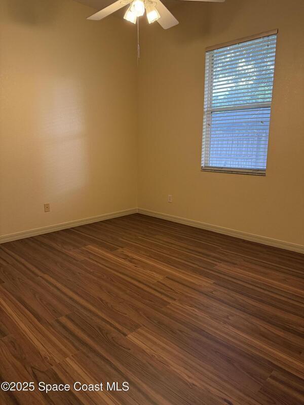 Available NOW! Beautiful and CLEAN home in a desirable Windsor Estates (gated) community. Spacious floor plan with family room and living room with sliders opening to screened lanai. Lanai opens to a fully fenced yard. Large master bedroom with sitting room or an office and access to lanai. His and hers bathroom vanity and a nice garden tub. Open kitchen with 42'' cabinets and formal living and dining room. Brand new Refrigerator. Family room with tall sliding doors offers beautiful view of the large, fenced backyard. Laundry room with sink and 3-car garage make this the perfect rental. This is an amazing home in a great location, close to the beach, shopping and A+ schools, Lawn care is included. Great location, close to shopping, restaurants, very close to Patrick Air Force Base and our amazing Beaches!