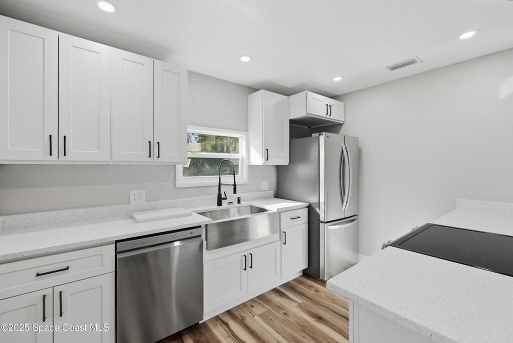 Step into a beautifully remodeled residence that blends modern upgrades with timeless charm. This home has undergone an incredible transformation, with all the heavy lifting already taken care of, making it ready for you to move in and enjoy. From the new metal roof to the impact windows, no detail has been overlooked in enhancing both the style and durability of this property. The upgrades offer peace of mind with long-term protection and energy efficiency. Inside, you'll discover a gorgeous new kitchen featuring stainless steel appliances, sleek countertops and custom cabinetry that create a stylish and functional space perfect for entertaining or everyday living. The bathroom has elegant finishes and thoughtful design to make every moment feel luxurious. Additionally, the property boasts a brand-new septic system, ample covered space, including a large covered carport and a two-car garage, providing plenty of room for your toys. Make time to see this gem of a home before it's gone.