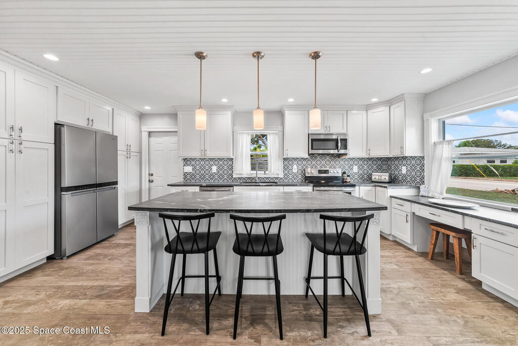 Location, charm and the true Cocoa Beach lifestyle... this one has it all! Just two blocks from the ocean and a short stroll to downtown Cocoa Beach, you're minutes from the best restaurants, shopping and entertainment the area has to offer. Positioned on a corner lot this beautifully remodeled 4-bedroom, 2-bath home delivers both style and convenience. Inside, you'll find a bright open-concept living space with vaulted ceilings, quartz countertops, a stunning updated kitchen with island and terrazzo floors in the bedrooms that add a touch of timeless coastal charm. The backyard feels like its own private retreat complete with a deck, privacy fence and an outdoor shower which is perfect after a day at the beach! Whether you're searching for a full-time residence, a vacation getaway or an Airbnb investment this home checks all the boxes! Impact rated windows,Roof 2023, AC 2018, Water Heater 2016. 15 min to Port Canaveral, 45+ min to Orlando