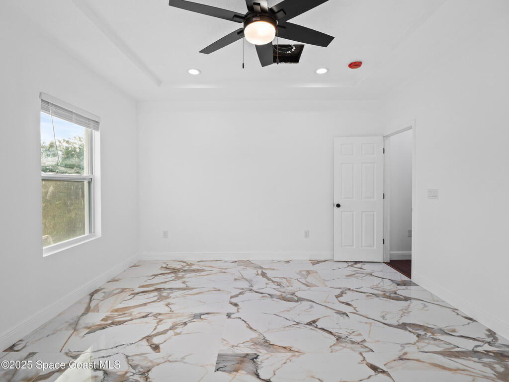 Brand New Construction with Hurricane Impact Windows! Open floor plan with 9'4'' ceilings throughout and tray ceilings in the master bedroom and living room. In the kitchen you have 42'' white shaker cabinets, granite countertops with a stunning waterfall edge, and stainless steel appliances. Primary bedroom has a generous size walk-in closet and the primary bathroom has dual sinks, shower and stunning tile work throughout. Split floor plan with two more bedrooms and a bathroom on the other side of the house. Luxury Vinyl Plank and tile floors throughout the house. Centrally located near schools, shopping, highway, less than 25 minute to NASA, less than forty minutes to the airport and less than fifty minutes to all the attractions & theme parks in Orlando.