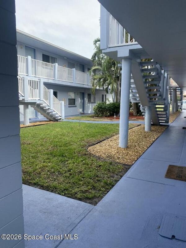 $2,000 BUYER CREDIT! Welcome to YOUR Pearl by The Sea! Just 500 steps from the beach & 1 mile to the famous Cocoa Beach Pier! This rare, updated unit stands out with a thoughtful 2018 renovation featuring new LVP flooring, updated kitchen cabinetry, stainless steel appliances, a newly added dishwasher with upgraded plumbing and electrical, an additional closet, an updated bathroom, and further electrical improvements. The large bedroom easily accommodates a king-size bed. Other improvements include a NEW A/C (2017), water heater (2017), & an 8-year-old roof. In 2025, all windows were professionally tinted for energy efficiency & comfort. First Floor Unit only steps from the laundry room & barbecue area. Move-in ready to rent with a 1-month minimal rental or reside at your small piece of paradise! Close to Beachline Express (528) to Orlando, all area attractions, all airports & Port Canaveral cruise ships.See the rocket launches from your private yard.