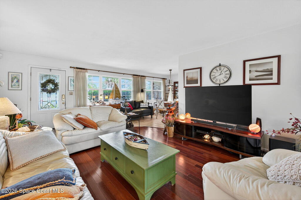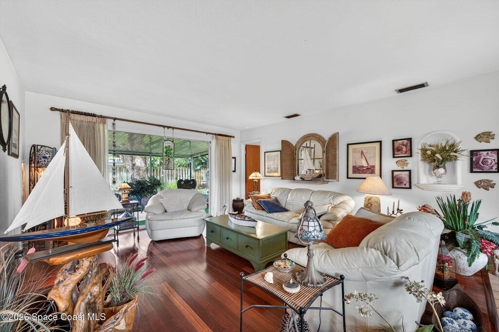 Adorable, charming, and full of character--this cottage-style home is the perfect first or second home! Step inside to beautiful Brazilian cherry wood floors flowing through the living room, primary bedroom, and guest room, complemented by a tiled entry, kitchen, and bathrooms, plus cozy Mohawk Berber carpeting in the office/den/3rd bedroom. Enjoy peace of mind with impact windows throughout (living room sliders excluded), a 2017 roof, sprinkler system, and a detached generator. The fully fenced yard features a double gate--ideal for storing a small boat. Ceiling fans in every bedroom add comfort, while numerous updates elevate the home's move-in readiness. Located just minutes from the Beaches, Historic Downtown Melbourne, FIT and the airport, this property blends convenience with charm. A must-see!