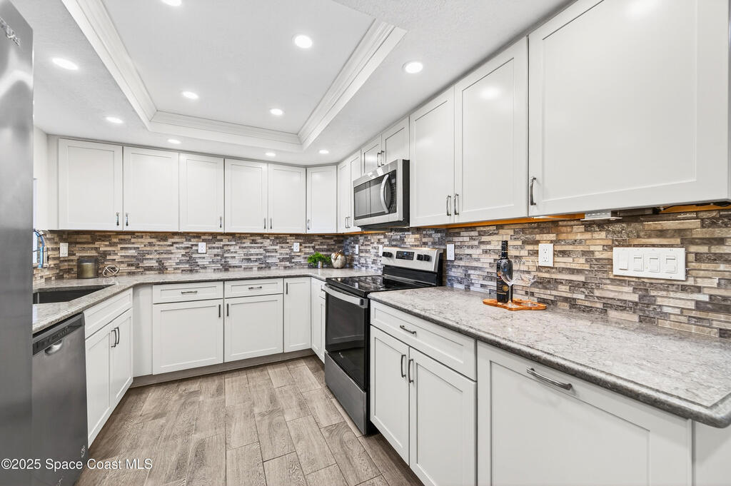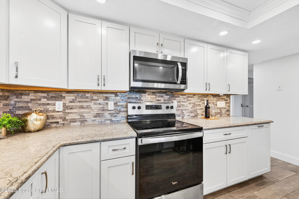 Suntree Beauty, on a quiet cul-de-sac street! Beautifully updated 3 bed/3 bath Suntree townhome offers a rare opportunity to live directly on the golf course with some of the best views. This updated townhome features 2 spacious Primary Suites, one on each level, making it ideal for multigenerational living, guests, or home office setup.Step inside to an open, light-filled floor plan with tile flooring throughout and hurricane windows that showcase the lush fairway views. The brand-new kitchen is the heart of the home, offering modern finishes and seamless flow into the large dining area--perfect for both everyday living and entertaining. A new roof (2025)provides peace of mind, and the one-car attached garage adds convenience with W/D hookup and H2O is 2014, A/C 2016Enjoy stunning sunsets overlooking the Suntree Golf Course, just steps away! Location, lifestyle, A rated schools & close to everything. This is a gem!