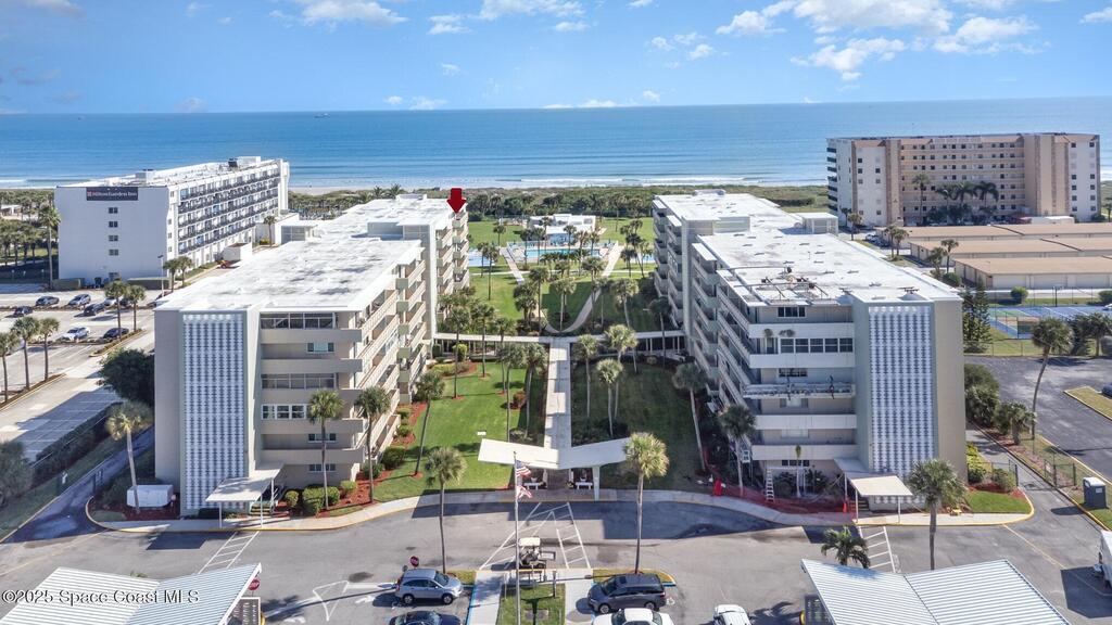 Ocean views from top floor remodeled 2 bed unit in well run Twin Towers. Stunning kitchen was opened up and remodeled in 2023, new wood cabinetry, quartz counters, large farm sink, all stainless appliances including the LG InstaView Knock-Knock Refrigerator. Updated LVP flooring throughout. New fixtures. Interior painted light & bright and fresh for beachside living. New AC 2025! New Electrical panel 2024! Great storage throughout. Primary bedroom with huge walk-in closet. Most of the materials for bathroom remodel have been purchased and convey with unit. Views from balcony overlook the ocean, community amenities and courtyard, and even offer views of the river to the west. Community is active with a clubhouse, community kitchen, BBQ area, community garden, pool, sauna, pickleball/tennis courts, shuffleboard, car wash, and direct ocean access all behind a gated entrance with on-site management. N Building balconies have already been re-done by HOA. Right in the heart of Cocoa Beach!