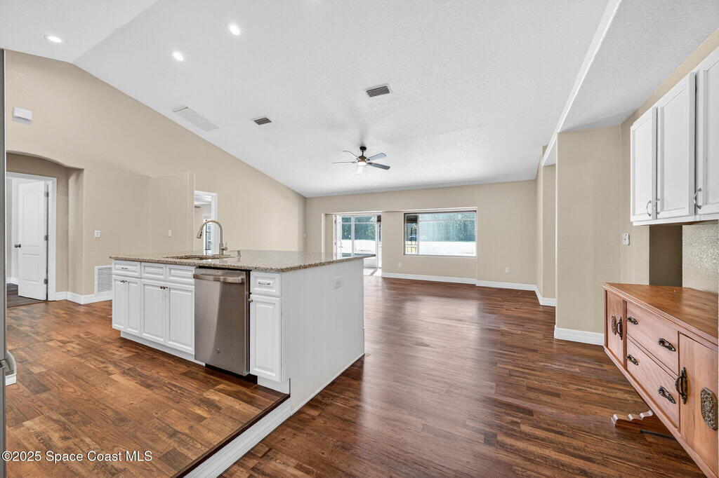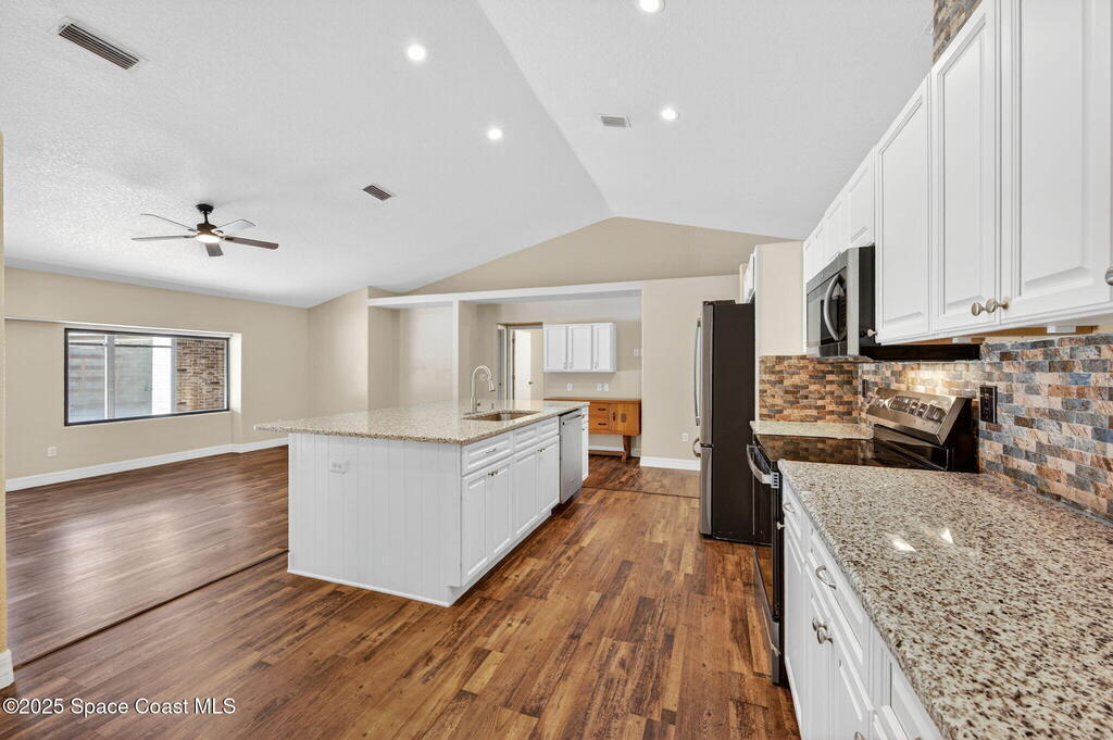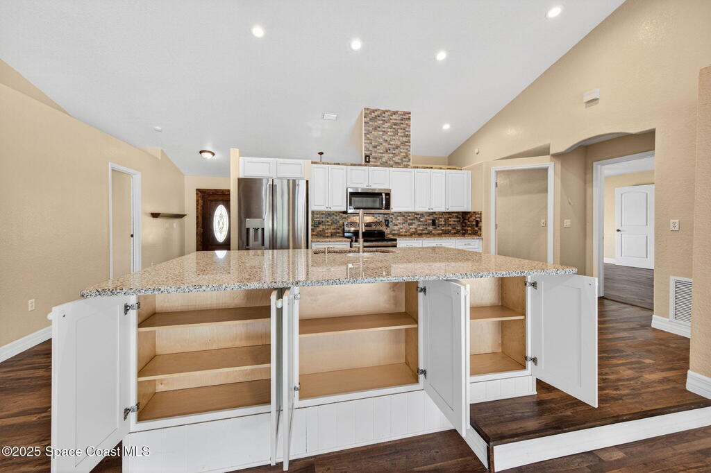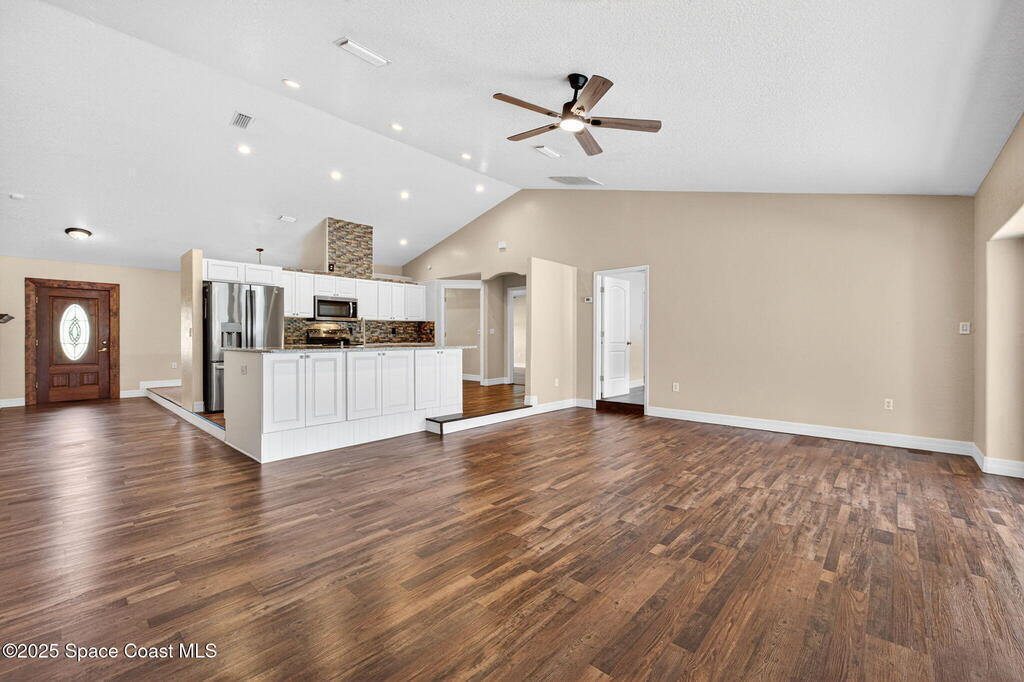 Breakfast Bar , Ceiling Fan(s) , Entrance Foyer , Guest Suite , In-Law Floorplan , Kitchen Island , Open Floorplan , Primary Bathroom - Tub with Shower , Split Bedrooms , Vaulted Ceiling(s)
