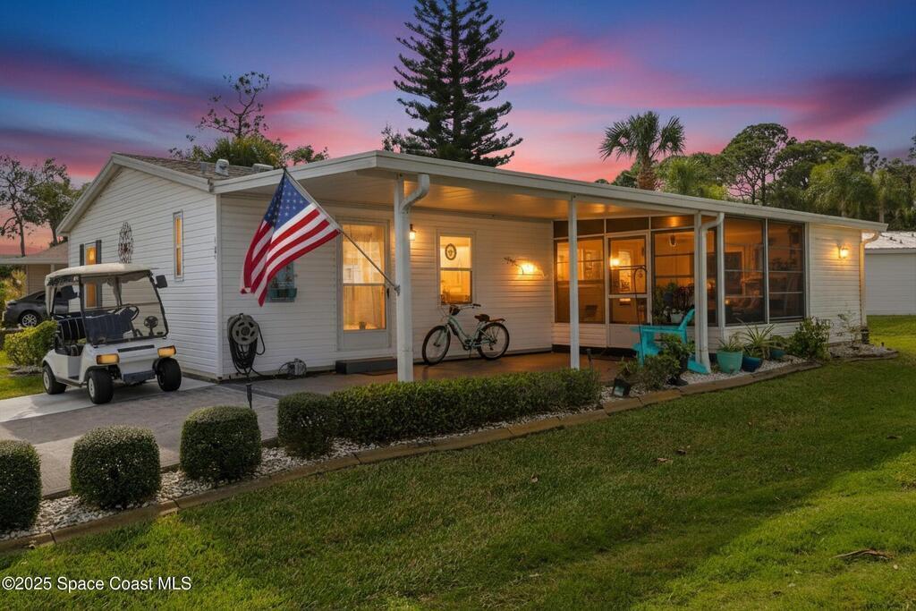 Not Far, close to Nasa,shopping,beaches,major travel arteries,not far from security gate and not far from the clubhouse!This home is perfectly located in the gated community of Lost Lakes!You own your land and your low HOA fee covers cable,internet,lawncare & security.this well maintained home with 2 bedrooms and two baths has waterproof laminate flooring throughout,a light and bright kitchen with island and chairs ,new windows and all the charm of Florida living .Your golf-cart is at your front door.This vibrant active community offers so much to enjoy from pickle ball,water arobics,holiday parties,and poker parties too!