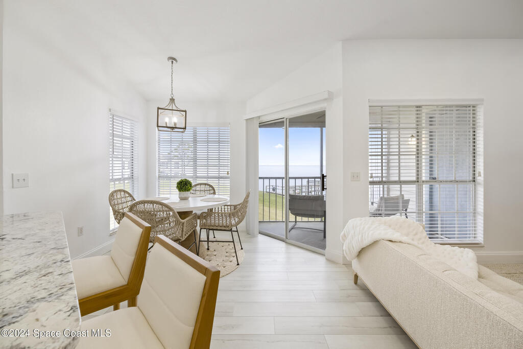 Imagine relaxing while enjoying the peaceful view and calming breeze from the Indian River along with the occasional excitement of witnessing the Rocket Launches from your very own balcony! This stunning turn-key waterfront condo was beautifully updated in 2022. Upon entering the natural light filled home with the expansive view of the intercoastal waterway will captivate you. The vaulted ceilings creates a sense of spaciousness and you will certainly enjoy being on the top floor with no neighbors above you! Waster, Trash, Cable & Internet included!