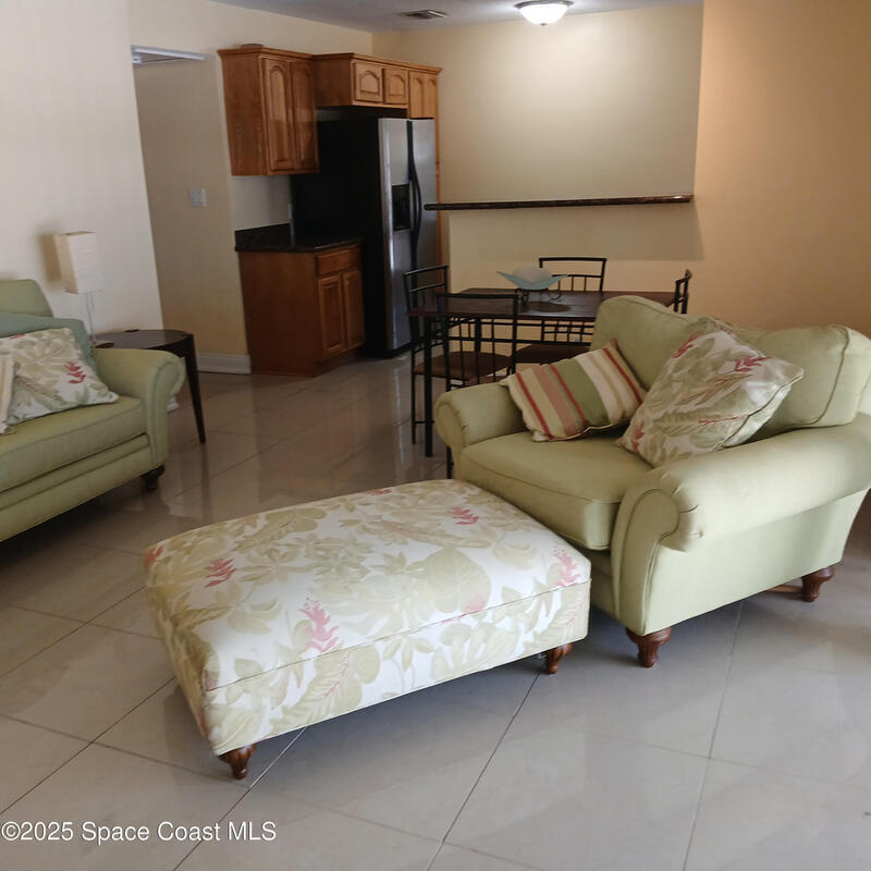 This partially furnished 2bedroom 1bath unit on the second floor looks over the pool and has tile throughout has a beautiful view of the courtyard and canal. Spacious back porch for relaxingFabulous amenities for your convenience, comfort, and services.You're minutes away from Cocoa Beach, Ron Jons, Cape Canaveral and several restaurants.Don't miss this opportunity!