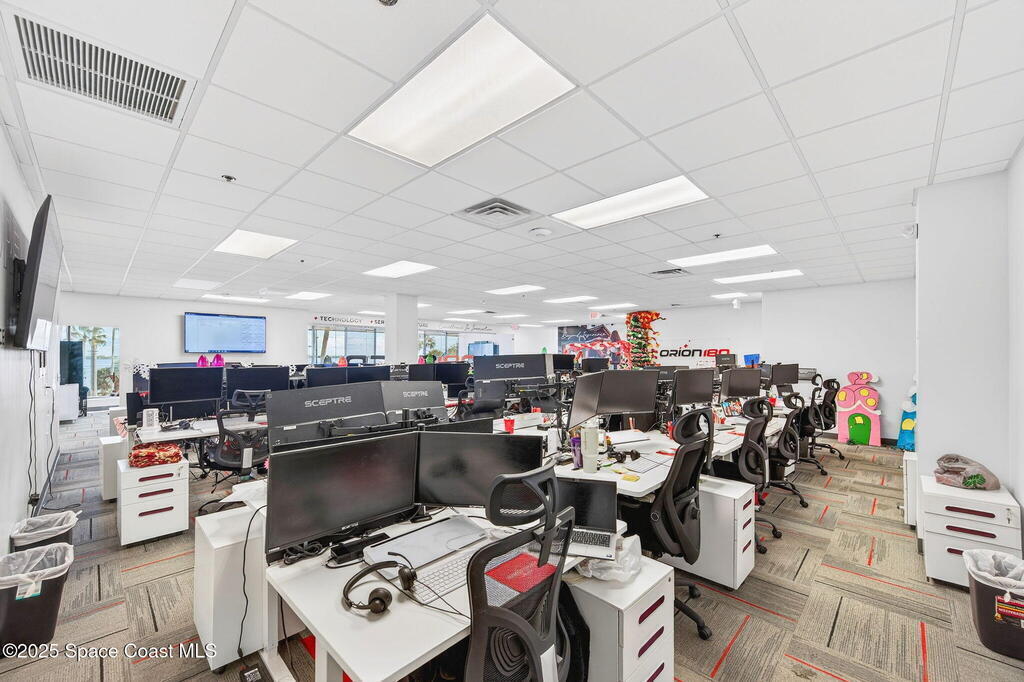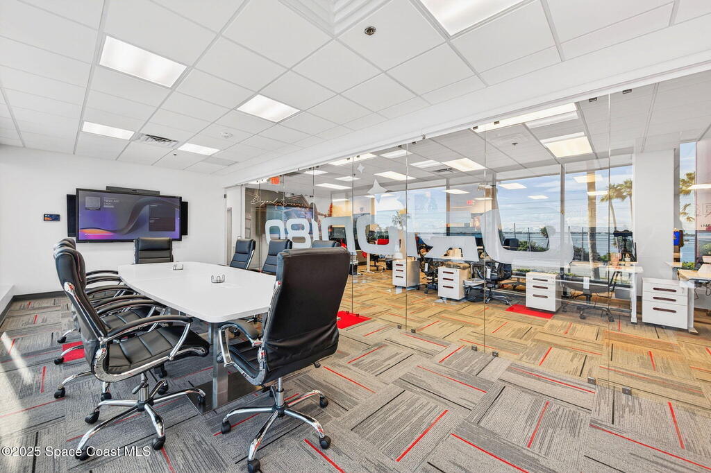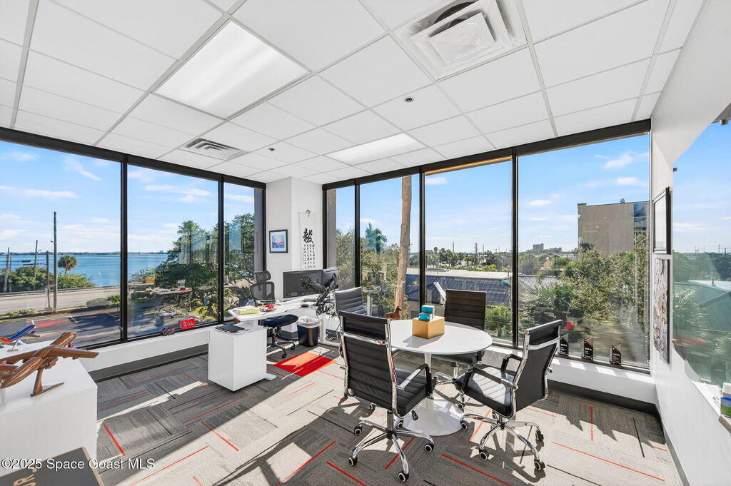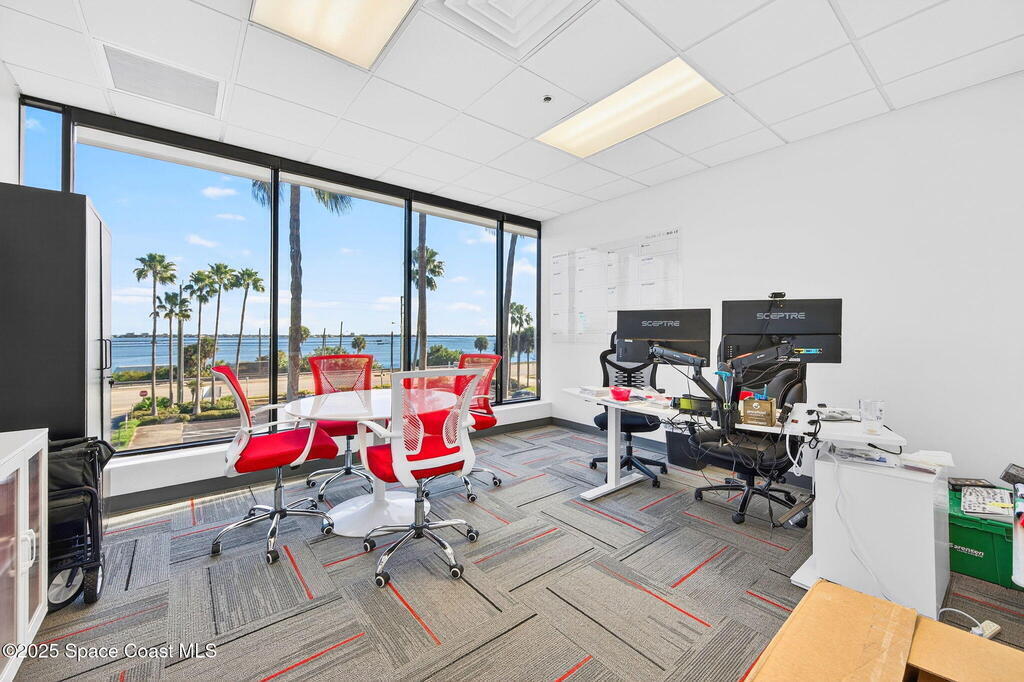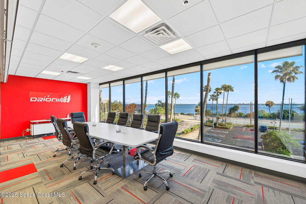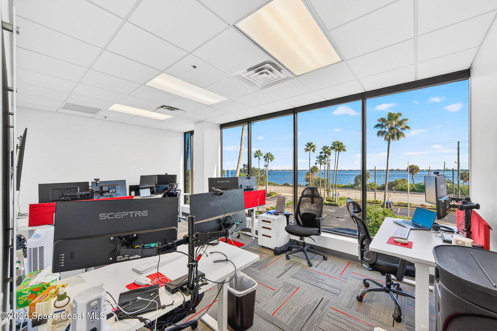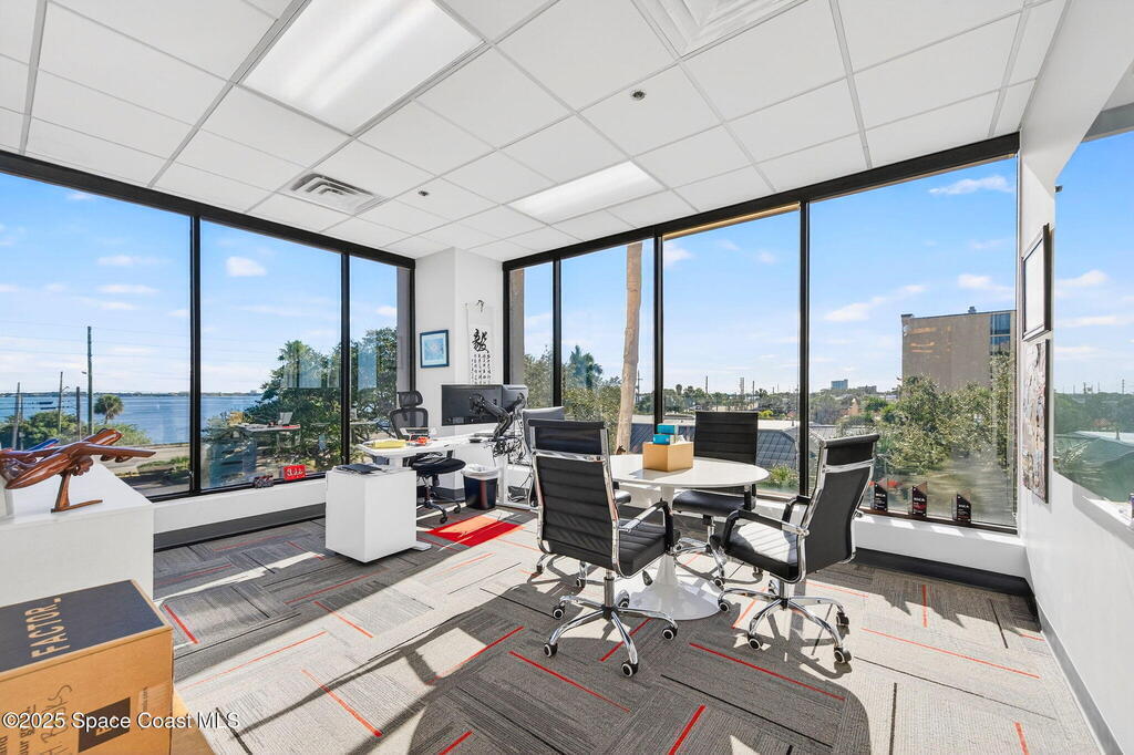 Prime 3rd-floor, 4,628 sq ft suite with river views in Class A Riverside Center. Features a glass-enclosed conference room overlooking the water, two large bullpens, four river-view offices, two additional offices, a full kitchen break room, and two secured storage rooms, with access to common-area restrooms. Close to the airport and major employers, with high visibility on Harbor City Blvd (32,000 cars/day). All offices include new solar shades, and the property offers ample parking.