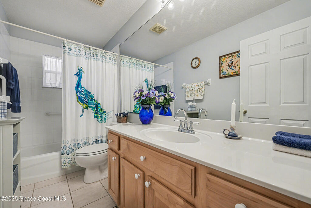 Your new pool home awaits in this exquisitely maintained 3-bedroom, 2-bath residence designed for both comfort and style. From the beautifully manicured lawn and elegant paver-stone driveway to the oversized chef's kitchen, every detail has been thoughtfully curated for everyday living and effortless entertaining. Tile flooring flows seamlessly throughout the main living areas and bathrooms, enhancing the home's clean, cohesive feel. The spacious primary suite is a true retreat, offering a luxurious bath with dual vanities, a dedicated makeup desk, walk-in shower, and a relaxing soaking tub. The enclosed Florida room provides flexible living space ideal as a family room, home office, fitness area, or bonus retreat to suit your lifestyle. Step outside to your own private backyard oasis with no direct rear neighbors. Cool off in the inviting solar heated conversation pool or unwind in this serene setting, perfect for morning coffee, evening cocktails, or alfresco dining under the stars.