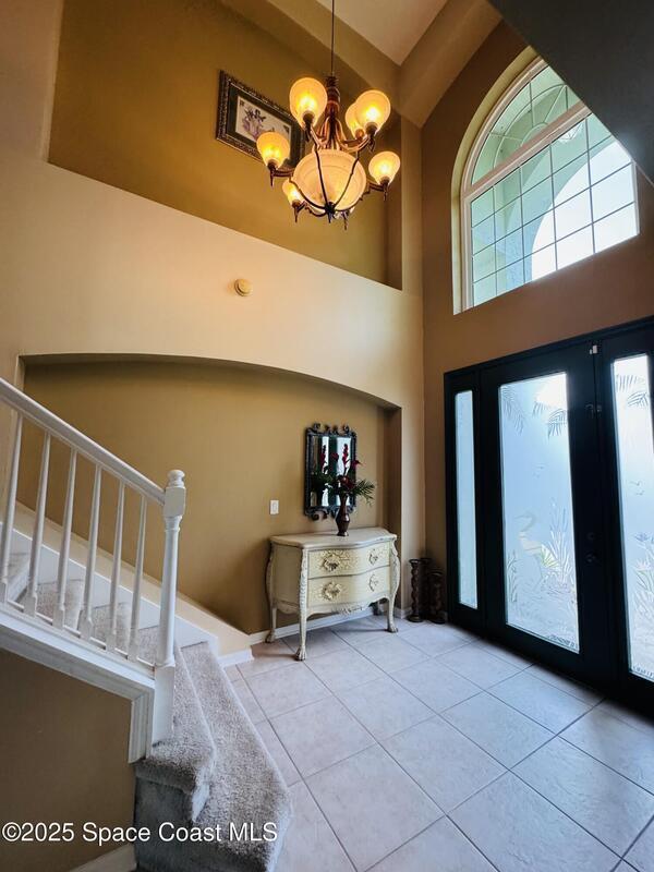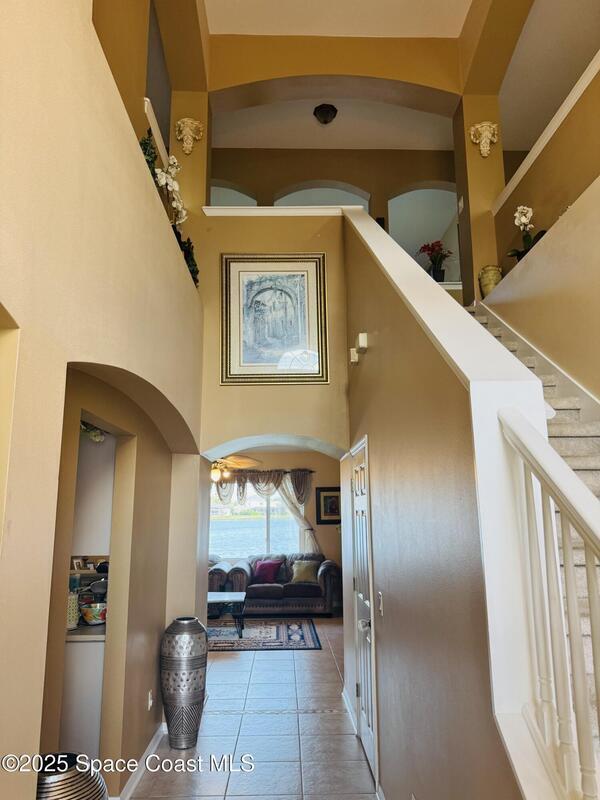 Welcome to this warm two-story lakefront home, perfectly situated in a beautiful,well-established neighborhood.This spacious residence offers 5 bdrs, 3 full bths, a large flex room, & a den,ideal for a home office, study or additional living space, providing comfort & versatility for today's lifestyle. Featuring wood flooring in the family room, with ceramic tile & carpet throughout the rest of the home.The interior has been freshly painted.Features numerous recent upgrades including:Two A/C units (2025 & 2020)equipped with a Halo LED air purification system backed by a 7-year warranty,Gas water heater (2025) Updated kitchen cabinets w/2025 appliances,including microwave, dishwasher & faucet.Updated bthr mirrors,frames & cabinets.Roof replaced in 2020. For peace of mind the property features hurricane-impact windows w/transferable lifetime wty, including double-pane Simonton windows rated up to 271 mph & single-pane Shoreline windows rated up to 160 mph, as well as an impact-resistant