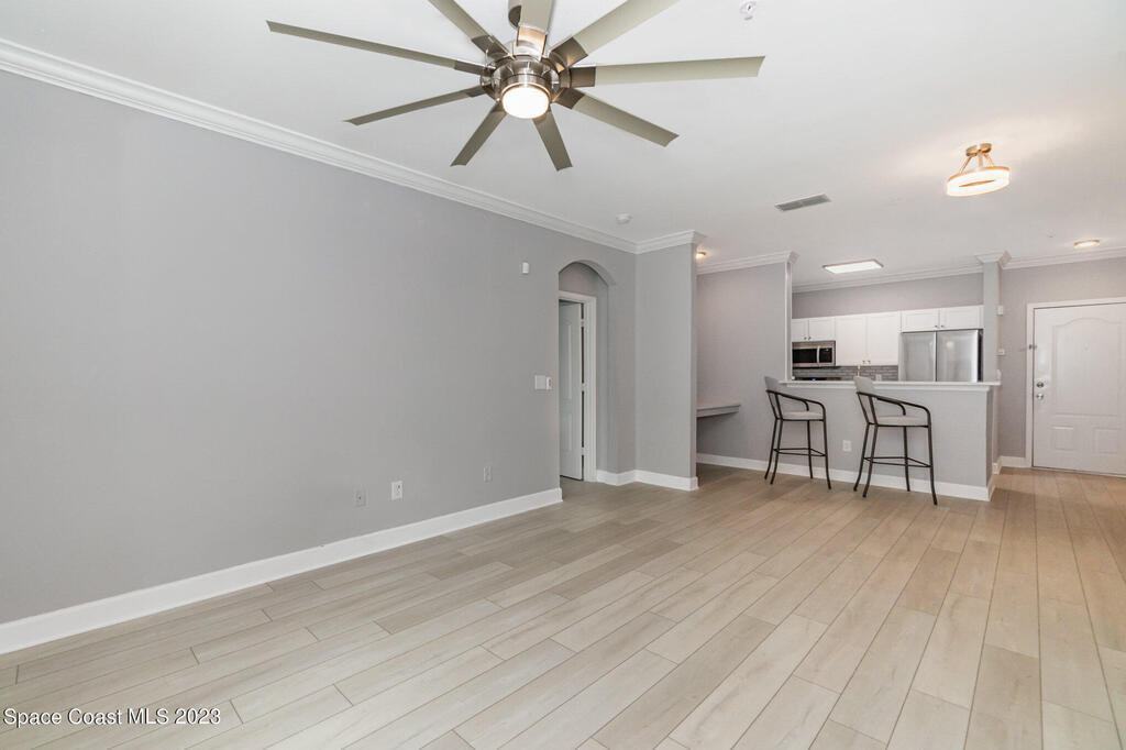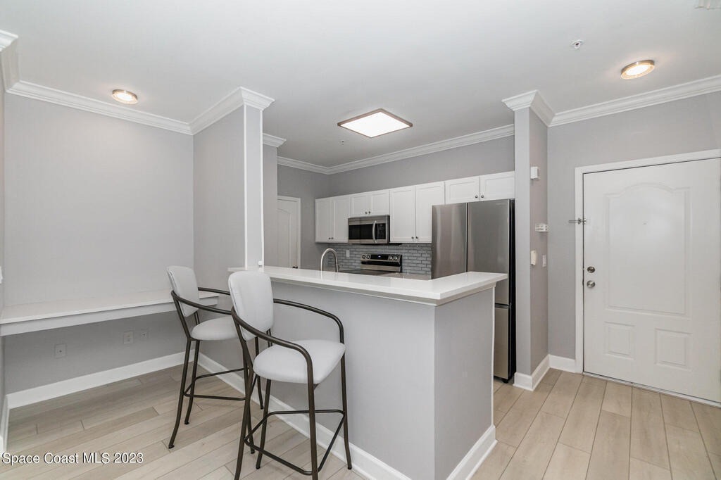 Located in Three Fountains in Viera which offers resort-style amenities including a gated entry, clubhouse with fitness center, library, card room, wireless internet, a tropical pool with heated spa, BBQ area, gazebo, valet trash pickup, and proximity to The Avenue Viera's shops and restaurants. This beautiful condo features newer appliances, Quartz counters in the kitchen and bathrooms, upgraded designer ceiling fans and blinds in the living area and bedrooms, and a large screened in balcony, this would be a great place to make your home! Convenient access to local charter schools, I-95, and local businesses. Pets considered. All residents are enrolled in a Resident Benefit Package for $39.95 per month, which includes renters insurance and other benefits. Please review the application for Resident Benefit Package details.
