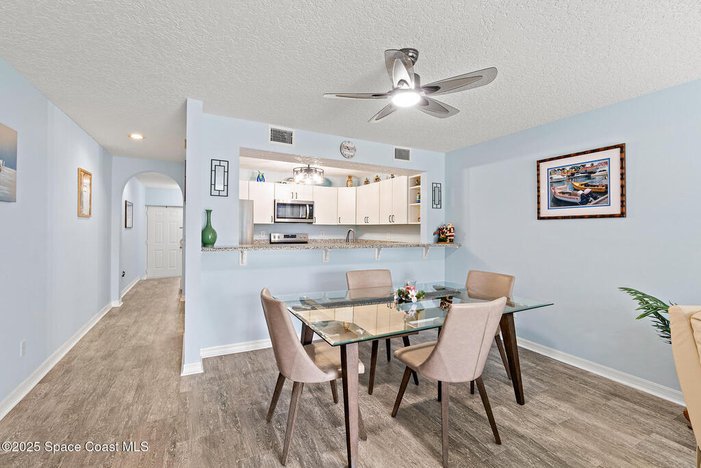 Welcome to Townhomes of Cocoa Beach, a community ideally located between the ocean and river in a sought-after neighborhood. Unlike traditional condos with boxy layouts, this modern home offers a house-like feel with all the advantages of low-maintenance condo living--and no milestone inspection required. Upstairs, both bedrooms feature private ensuites, dual closets, vaulted ceilings, Plantation & storm shutters. The main suite is exceptionally large with a sprawling balcony overlooking lush palm trees & green space. Both bathrooms offer granite vanities & elegant tile finishes. Modern granite kitchen has plenty of cabinets & newer stainless appliances. 1st floor powder room, laundry w/utility sink & attached one-car garage with epoxy floor & impact-rated door. Additional highlights include new water heater, roof, vinyl flooring, newer HVAC & fresh paint. Close to the Cocoa Beach Pier, Publix, dining & shopping, this condo's location & features make it truly stand out. Schedule today!
