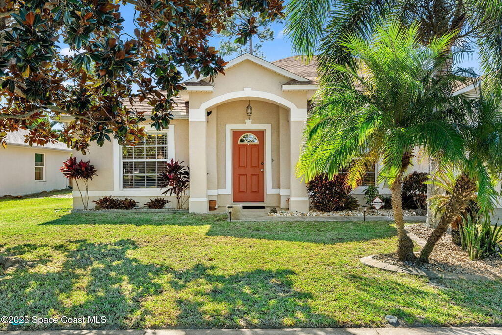 Welcome home to this beautifully maintained rental in the desirable Sunrise community, right in the heart of Viera/Suntree. This concrete block home offers vaulted ceilings, no carpet, fresh interior paint, quality laminate flooring, a newer roof, and brand-new AC. Enjoy lake views from the front entry, dining area, and office, plus a private wooded backdrop behind the home. The split floor plan features a spacious primary suite with a walk-in tiled shower, garden tub, and double sinks. The bright kitchen opens to the family room, and the office with French doors can double as a 4th bedroom or flex space. Step out to the oversized screened porch -- perfect for relaxing or entertaining year-round. Washer & dryer included, and the owner pays the water bill. Just steps from the community lake, park, and playground. Zoned for A-rated Brevard County schools, minutes to Viera shopping & dining, Spyglass Park, Brevard Zoo, Patrick Space Force Base, and a short drive to the beaches.
