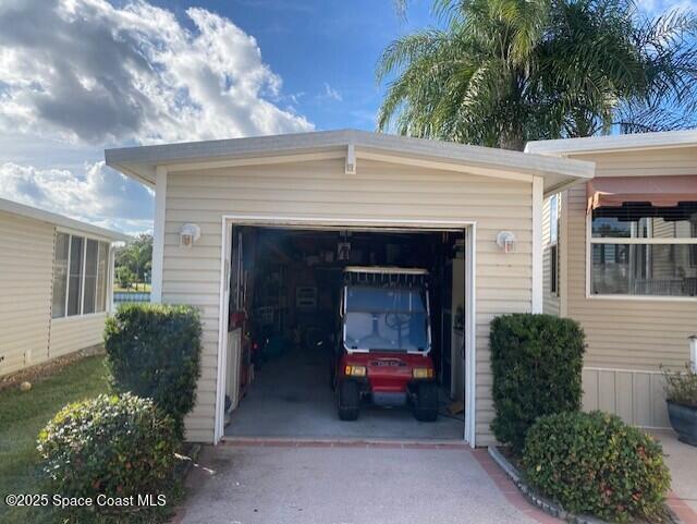 This well kept park model with garage and addition is ready for winter or year round residents to come and enjoy Florida resort living in and active 55+ community. 5 years old metal roof, energy efficient vinyl windows in 2023 and has a sea wall along the lake. There is a screen porch overlooking the community lake and views of the clubhouse. There is a separate garage that will fit a smaller vehicle or your golf cart and/or motorcycle. Located at the North end of Brevard county, this community is close to airports, theme parks, beaches, shopping, restaurants and watch rocket launches from your front yard. Willow Lakes RV and Golf Resort offers public executive golf course, club house, pickleball, tennis, heated pool and more.