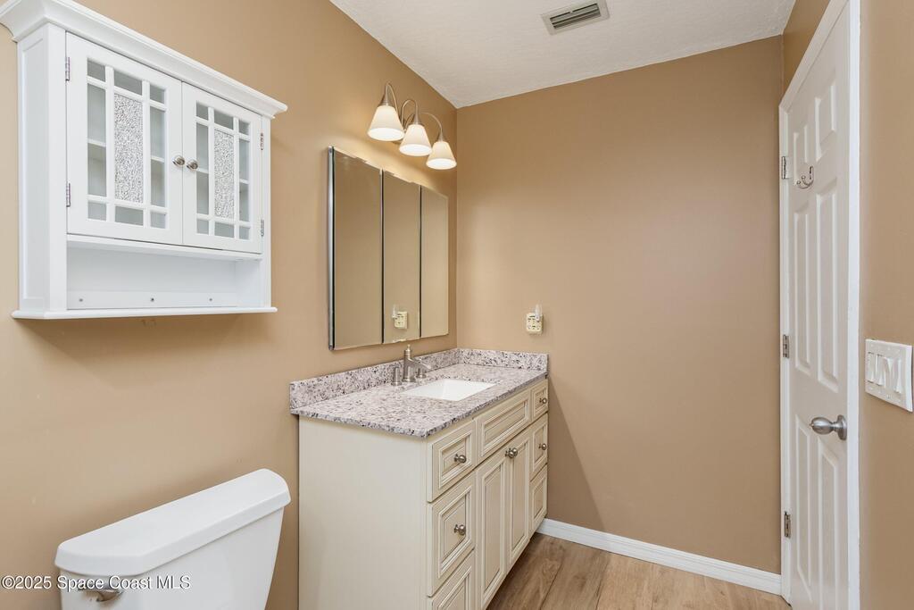 3b/2b Melbourne home w/2-car garage welcomes you into a front family room w/high ceilings that set an open, welcoming first impression. Kitchen sits just off family room & garage entry and is filled w/natural light from skylights. Designed for real use, it features soft-close drawers, pull-out shelving, built-in wine rack, a floor-level vacuum system & a bar counter that opens to the dining space -- perfect for casual meals or conversation while cooking. Enclosed patio extends the living space & includes floor-to-ceiling storage along one wall, ideal for hobbies or extra organization. Primary suite is privately located off family room w/patio access, step-in shower, large walk-in closet & view of fully fenced backyard. Two spare bedrooms share a full bath w/tub/shower combo & one offers a built-in Murphy bed. Out back, a patio creates space for grilling, relaxing or soaking up the sun. Ceiling fans throughout add comfort. Schedule your showing & see how this home fits your next chapter