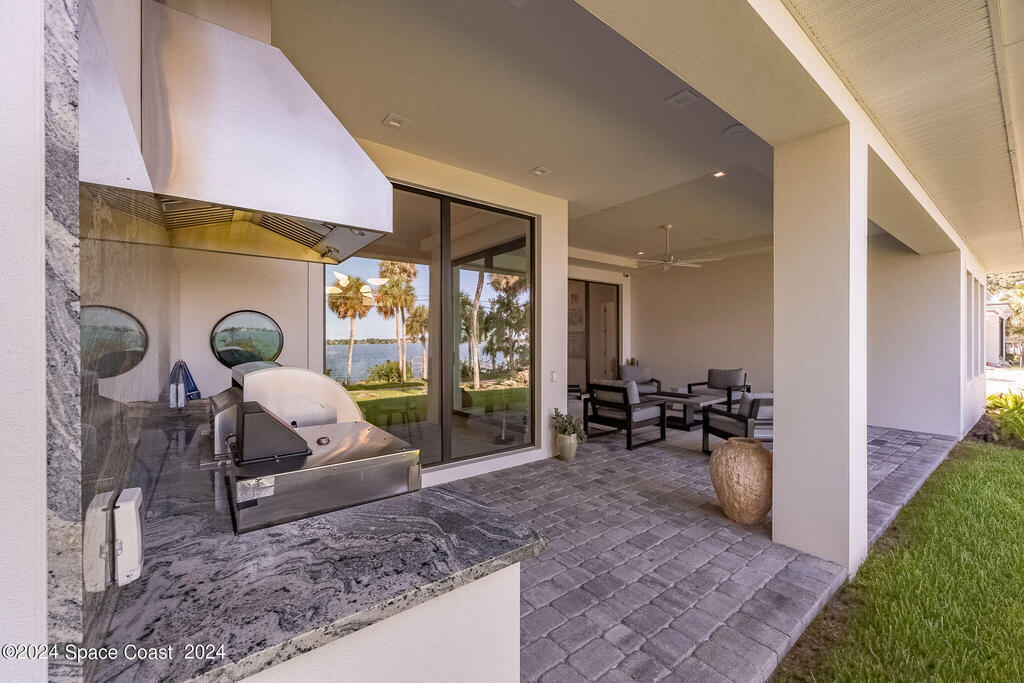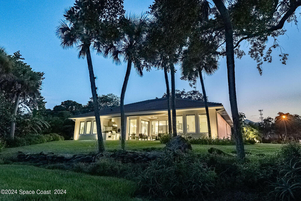Christopher Burton Custom Riverfront home off Historic Rockledge Drive. Just a golf cart ride to Historic Cocoa Village for dining, art festivals, & concerts; minutes from 1-95 to Orlando & the Theme parks, Viera Avenue shopping, and beaches. Watch rocket launches from the covered patio or the HOA dock. Plenty of room to build your own private dock on the Intracoastal Waterway. Positioned outside of any designated flood risk area, this exquisite property offers both beauty & security. Enjoy direct river views, outdoor kitchen, and an oversized 3-car garage. Features include a whole-house generator, poured concrete block every third row, motorized shades, Wi-Fi throughout, security system, and built-in speakers. Homeowners insurance under 4K/year. Exceptional value, luxury, and location all in one! No detail was overlooked in the construction of this exquisite home.