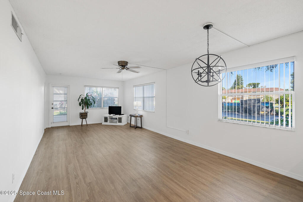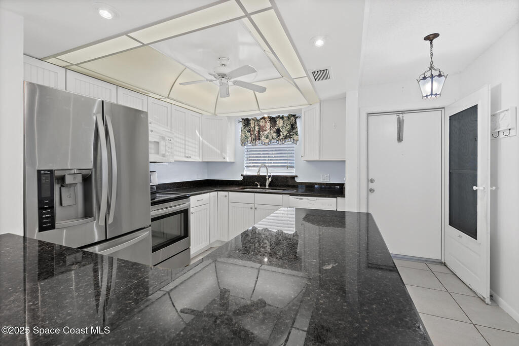 Welcome to this beautiful and spacious 2-bed, 2-bath first-floor condo in the highly desirable Cape Shores community in Cape Canaveral, nestled next to the Banana River. This light-filled unit offers an open floor plan, a newly renovated kitchen, and a relaxing enclosed sunroom--perfect for morning coffee, quiet evenings, or entertaining guests. The updated kitchen features stainless steel appliances, bright white cabinetry, modern fixtures and generous breakfast bar. Spacious open-concept living and dining areas create an inviting atmosphere. The primary bedroom includes an expansive walk-in closet, separate vanity, and walk-in shower, with sliders leading to a private screened patio. A guest bedroom and second full bath add convenience. Enjoy year-round comfort with a 2-year-old AC system. Enjoy year-round comfort with a 2-year-old AC system. Ideal as a full-time residence or vacation retreat, this home offers exceptional value. Don't miss this opportunity!