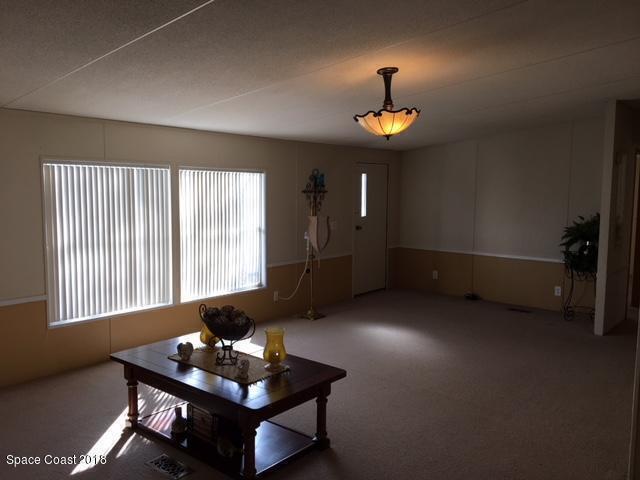 Come see this well-maintained double-wide manufactured home, 3 bedroom 2 full baths. Primary bedroom has two closets, large master bath with double vanities, super large garden tub and separate bathroom. The eat-in kitchen has been updated, indoor laundry room with hookups and extra storage. Nice huge open floor plan with vaulted ceilings. Large screened-in porch that leads out to the back yard with wrap-around sidewalk and extra deep drive way. The community backs up to ''Cocoa Conservation Park Area'' perfect for entertaining family, friends and year round BBQ's. It offers scenic walkng trails, ideal for nature lovers. Quiet neighborhood close to schools and shopping. Minutes from I-95 and 45 minutes to Orlando airport and the attractions. Owner requires credit score of 700 or above to apply. No cats.