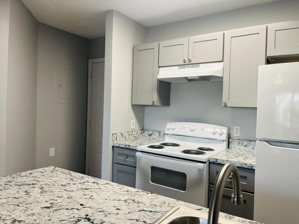 Sunset Bay in South Merritt Island! UPDATED as of 2024!! First floor studio unit. Newer vinyl luxury plank flloring! Newer kitchen cabinets, newer counter tops, newer fixtures and newer appliances! Newer bathrrom vanity and newer bathroom fixtures! Complex amenities include community pool with spa, tennis and basketball court, car wash area, fitness center, clubhouse, BBQ area, community walking area along the river and pet walk. Gate community. Onsite property management. Owner pays condo association fees. Owner will consider a small pet under 20lbs. No aggressive breeds please. Tenant must register with onsite management before move in.