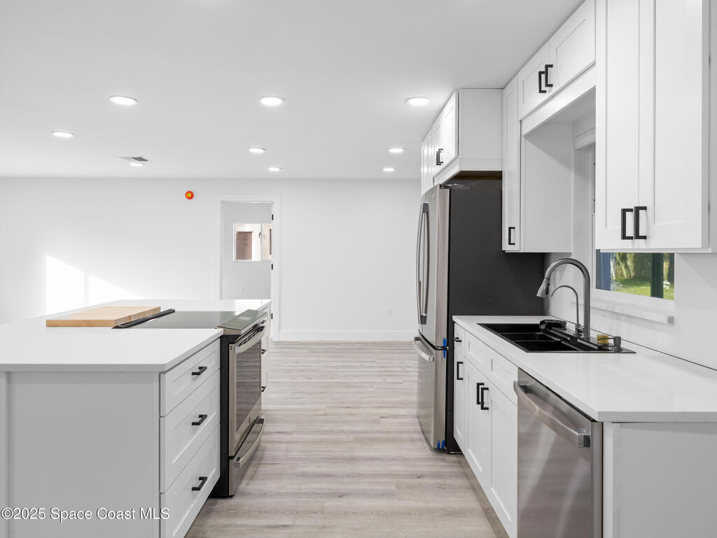 Completely remodeled City Water home! Brand New roof, New A/C, New septic, New Electrical Panel, New Kitchen with 42'' white shaker cabinets and quartz countertops. New modern garage door. Both bathrooms have been fully remodeled, newer water heater, New LVP flooring throughout, recessed lights throughout, epoxy floors in the garage and in the screened in patio. This home was meticulously updated with thought put into all aspects of the home, delivering a fresh, move-in-ready living experience! Whether you're a first-time buyer, downsizing, or investing, this turnkey, fully remodeled property is a standout opportunity you won't want to miss. Centrally located off Babcock St with easy access to Malabar Rd, Palm Bay Rd, I-95 & Highway US1.