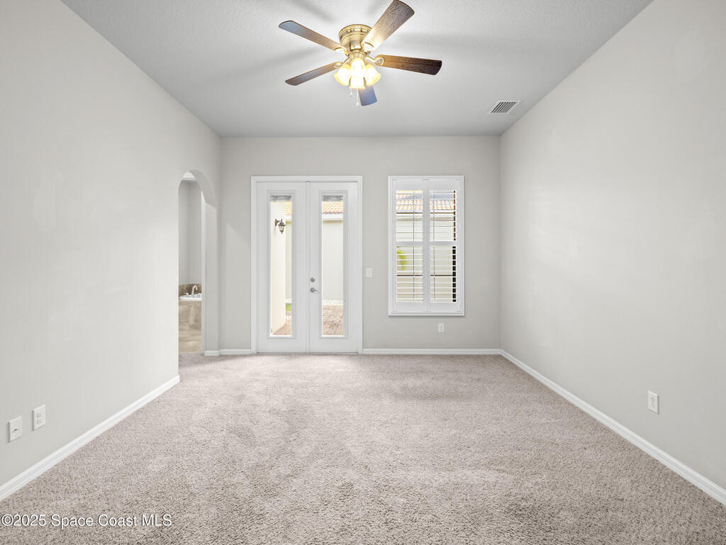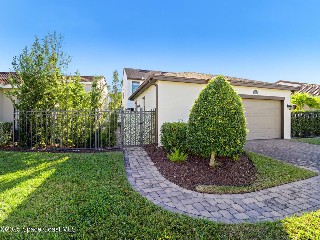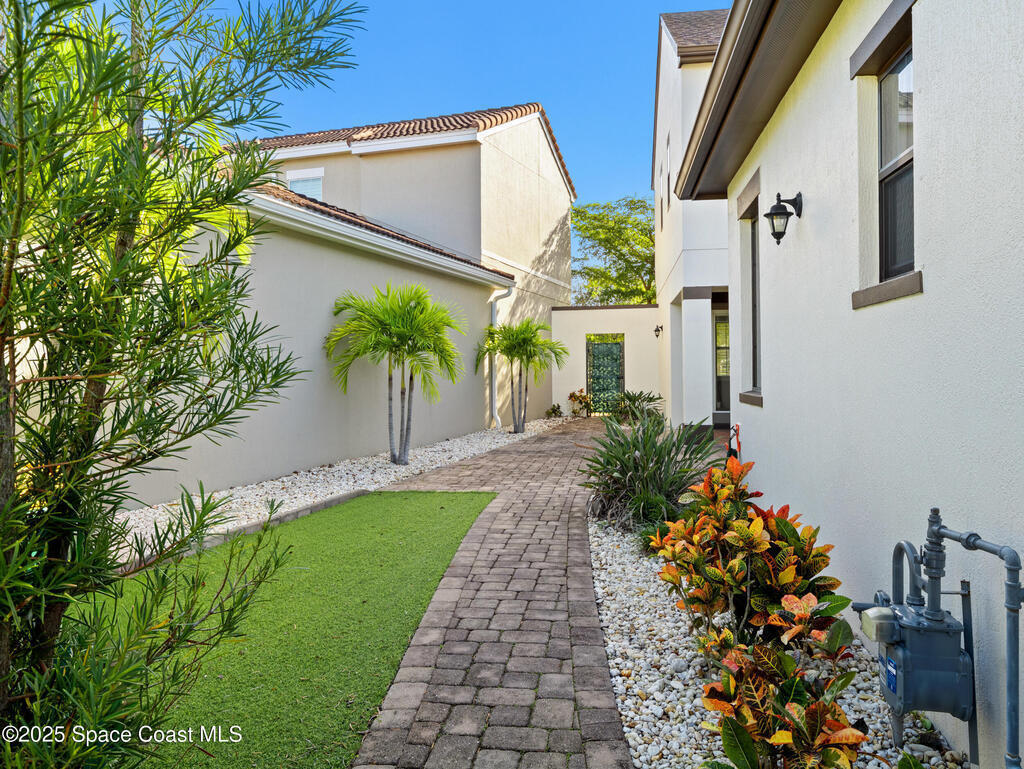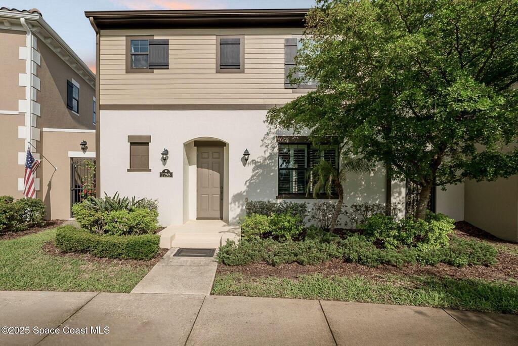 Overlooking a serene park in desirable Arrivas Village, this upgraded home offers comfort & convenience. Moments from The Avenue Viera's shopping & dining, this home is designed for indoor-outdoor living. French doors open to one of the largest private paved courtyards in the community. The chef's kitchen features espresso cabinets, granite counters, stainless steel appliances, & a gas range. Beautiful tile flooring runs throughout the main living areas, with plush carpet in all bedrooms. The 1st-floor owner's suite has a spa-like ensuite w/ a walk-in shower & soaking tub, plus French doors that open directly to the private patio. Upstairs, find 2 guest rooms (one ensuite). Enjoy low-maintenance living w/ an HOA that covers lawn care & exterior paint. Community amenities include a resort-style pool, playground, & dog park. Features impact windows (front/2nd floor), hurricane shutters, & plantation shutters. A perfect blend of elegance & convenience in a vibrant, walkable neighborhood.