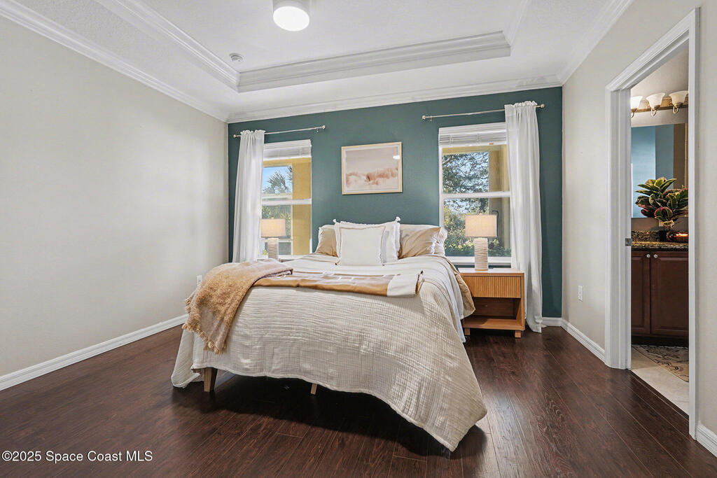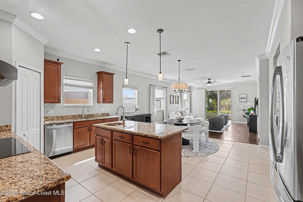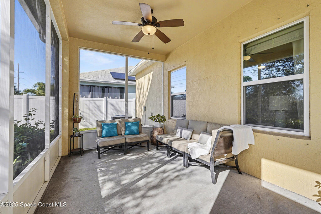 Welcome home to this beautifully upgraded 4-bedroom, 2-bath residence offering 1,713 sq. ft. of comfortable living space in desirable West Melbourne. This well-maintained home features 9+ ft ceilings, elegant crown molding, and stylish laminate flooring, creating a bright and inviting atmosphere. The spacious chef's kitchen is perfect for entertaining and everyday living, complete with granite countertops, bullnose corners, modern finishes, and a new dishwasher (2024). Major updates include a new roof and garage door (2023) for added peace of mind. Enjoy Florida living year-round on the expansive 1030 screened porch, overlooking a preservation area with no rear neighbors, offering exceptional privacy. Additional features include smart switches and an electric car charger. Conveniently located near shopping, dining, parks, major roadways, and A+ schools, this move-in-ready home offers comfort, privacy, and convenience.
