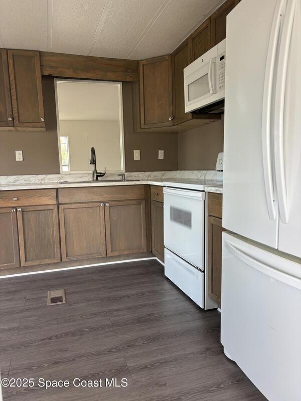 Step into this inviting 2 bedroom, 1.5 bath home. kitchen with recent updates spacious layout offers plenty of natural light and room to personalize. New metal roof, undated air conditioner, new insulation under floors & new vapor barrier, New Luxury Vinyl Plank floors! Outside shed, carport. Newer vinyl siding. Great seasonal escape, full-time residence, or investment property. You will enjoy access to 3 sparkling community pools, Tennis, Pickle Ball & many clubs. You own the land!(no lot rental fee)