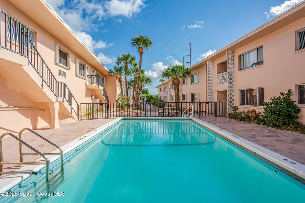 Rare opportunity to own a FIRST FLOOR Beachside condo in Melbourne Beach at this price! Move -in Ready 1 Bedroom/1 Bath with 1 car Garage directly across the street from the beach access! Beach Chateau is a Charming Courtyard designed Complex that offers quiet peaceful relaxation beside a community pool steps from your door. This 1st Floor unit boasts tons of natural light. Freshly painted , New Kitchen Cabinets and New Flooring. This building has solid poured concrete construction and Roof is only 4 years old. Association Fees cover TV Cable, Insurance, all exterior maintenance, roof, lawn & landscaping, trash, pool and free laundry in bldg. Shared On-site Laundry Room~1 Car Garage included! Take a short walk across the street to Loggerhead Park Preserve. Enjoy a serene dune crossover before stepping onto the beautiful Melbourne Beach! Close to Restaurants and Shopping! Do not wait or miss out on this one today! 6 month Rent Restriction. 25 pound pet max