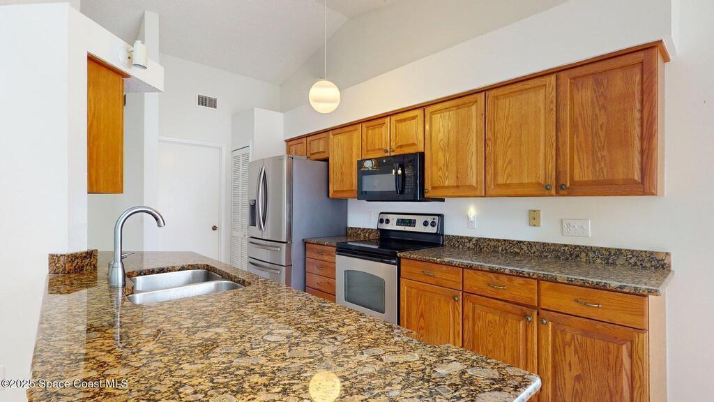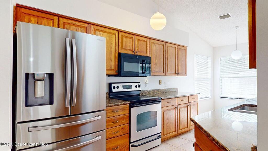 Welcome home to this well-maintained & thoughtfully updated 3 BR, 2 BA home with a 2-car garage, located in an established neighborhood in the heart of Melbourne. Major improvements include a roof just 3 years new and a newer A/C, offering peace of mind for years to come. Vaulted ceilings enhance the open and airy feel of the main living areas, creating a bright and welcoming atmosphere. The updated eat-in kitchen features granite countertops, abundant cabinetry, a breakfast bar, all appliances included, and a French-drawer refrigerator, making it both functional and stylish. The primary bedroom offers a private ensuite with double sinks and granite countertops, while the renovated hall bathroom showcases granite tops and a modern walk-in shower. Enjoy Florida living from the screened porch overlooking a fully fenced corner lot, ideal for relaxing or entertaining. Conveniently located near shopping, dining, parks, and major roadways, this home blends comfort, quality updates,